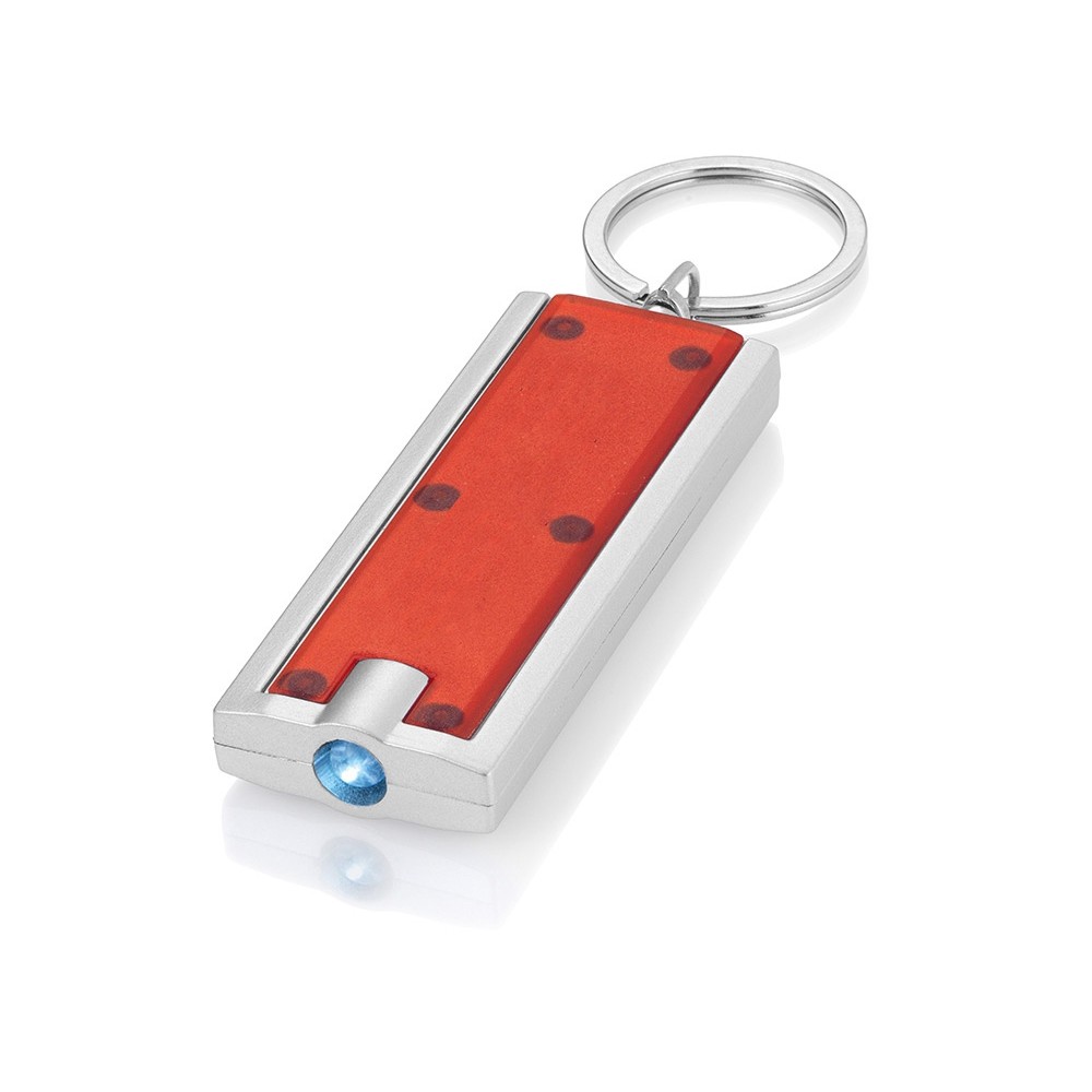 Брелок с ярким светодиодным фонариком с кнопкой. Металлическое кольцо для ключей. Батарейки включены в комплект. АБС-пластик.