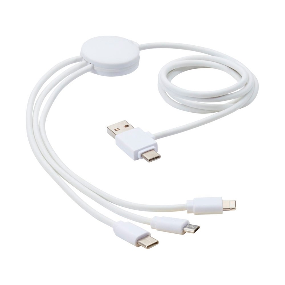 Зарядный кабель с противобактериальной присадкой и 5 разными разъемами: Вход Тип-C, вход USB-A, выход Тип-C, выход iOS и выход micro USB. С возможностью использования кабеля с устройствами с выводом Тип-C, которым оснащены телефоны и компьютеры MacBook нового поколения. Длина кабеля составляет 100 см. Противобактериальная присадка способна эффективно снижать уровень бактерий, присутствующих на поверхности материала, с высокой эффективностью подавляя рост бактерий и грибков, создающих неприятные запахи, приводящих к окрашиванию и деградации текстильных и пластиковых изделий. Протестировано в соответствии с ISO 20743:2013. ПВХ, Пластик ABS.