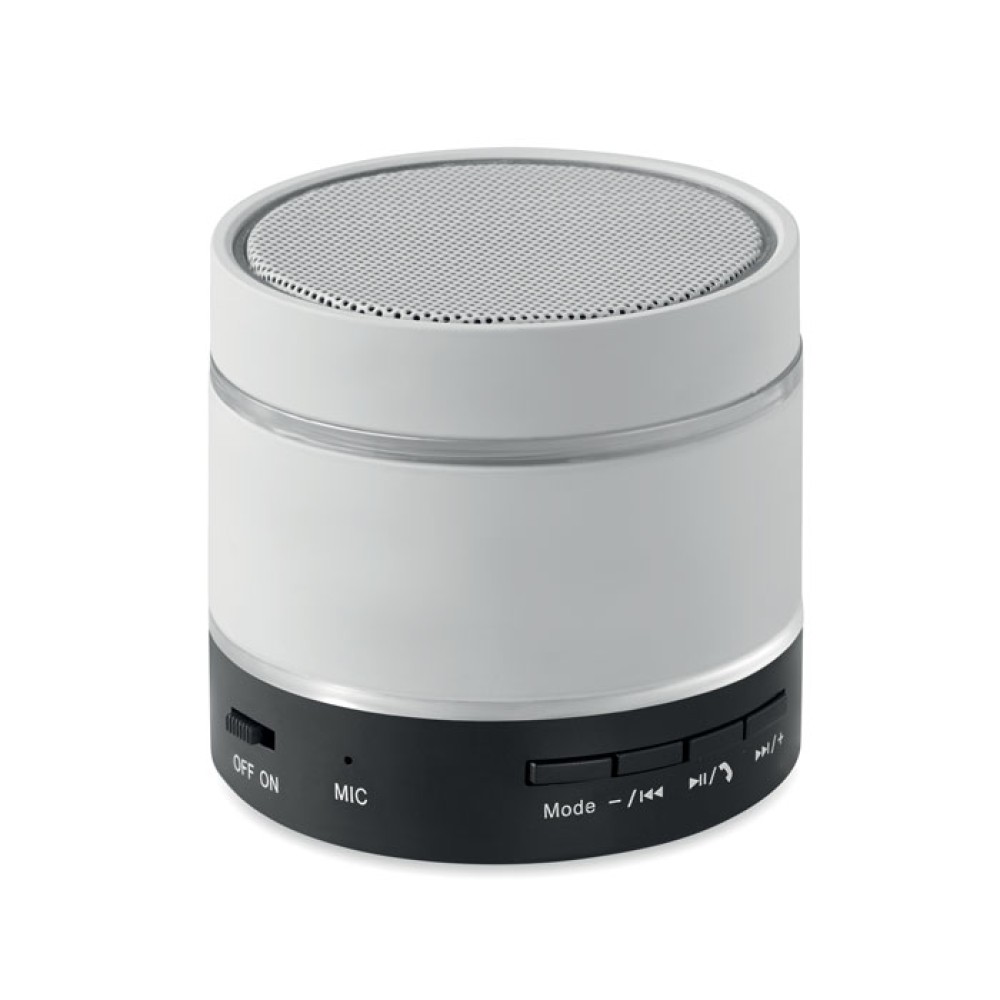 Колонка Bluetooth 2.1 с меняющим цвет светодиодным элементом и прорезиненной поверхностью. Есть функция ответа на звонок. Имеется разъем для SD карты и USB кабель. Работает от литий-ионного аккумулятора 300 мАч (включен).