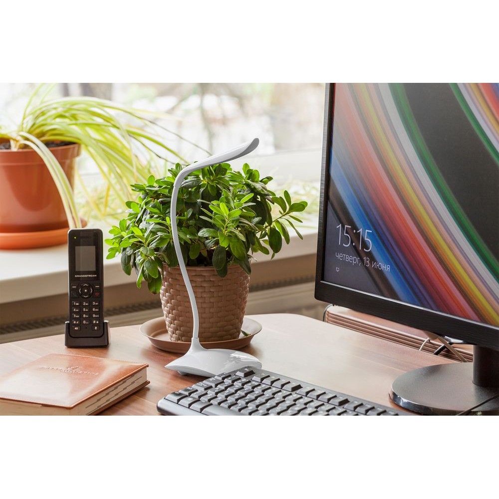Гибкое основание и три уровня яркости в диапазоне от 24 до 60 лм позволяют выбрать максимально комфортное освещение. В лампу встроен заряжаемый аккумулятор на 500 мАч, что позволяет использовать ее в автономном режиме, перемещая с места на место без привязки к проводу и розетке. Полный заряд обеспечивает до 8 часов работы. Лампа также может работать от сети.