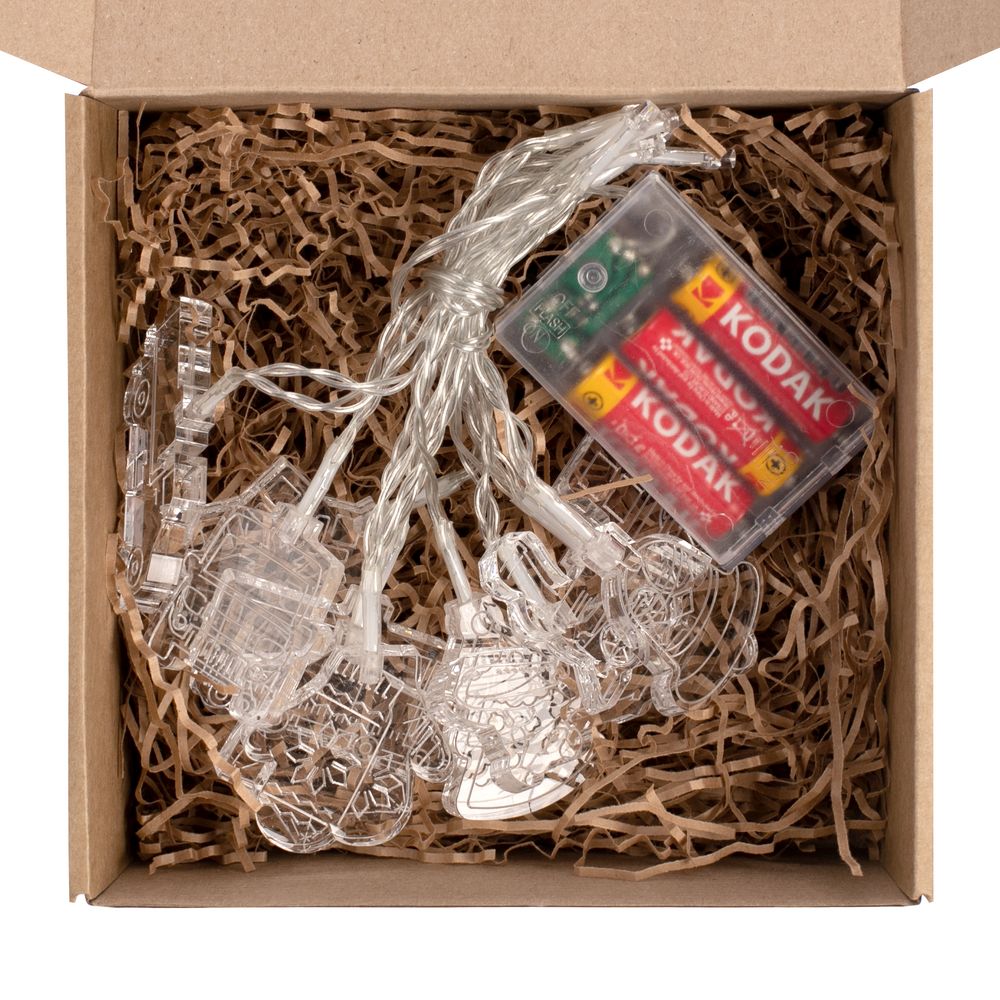 Гирлянда с индивидуальными фигурками подарит сказочную атмосферу в любое время года. Упакована в коробку из микрогофрокартона с шубером из мелованной бумаги 200 г/м².