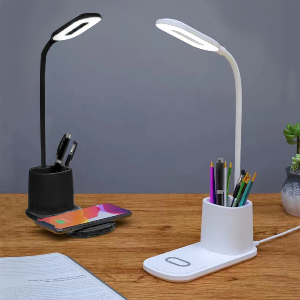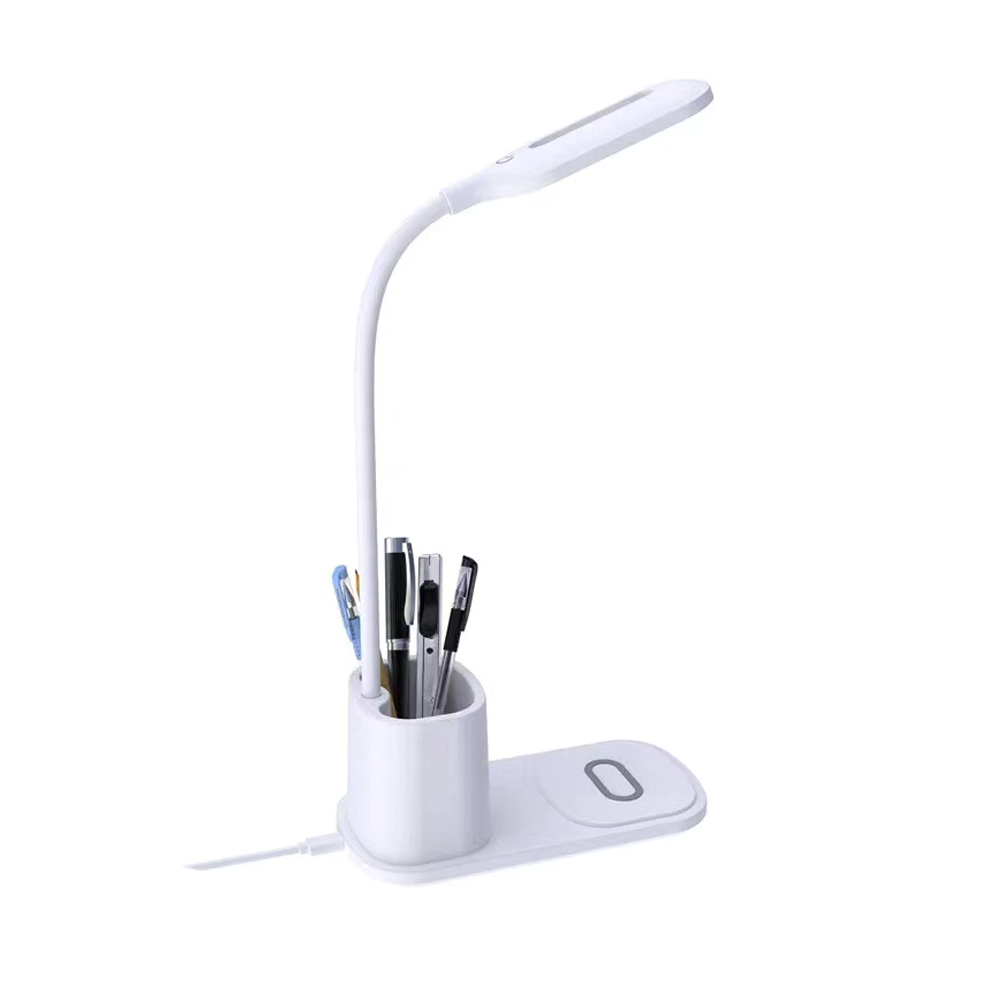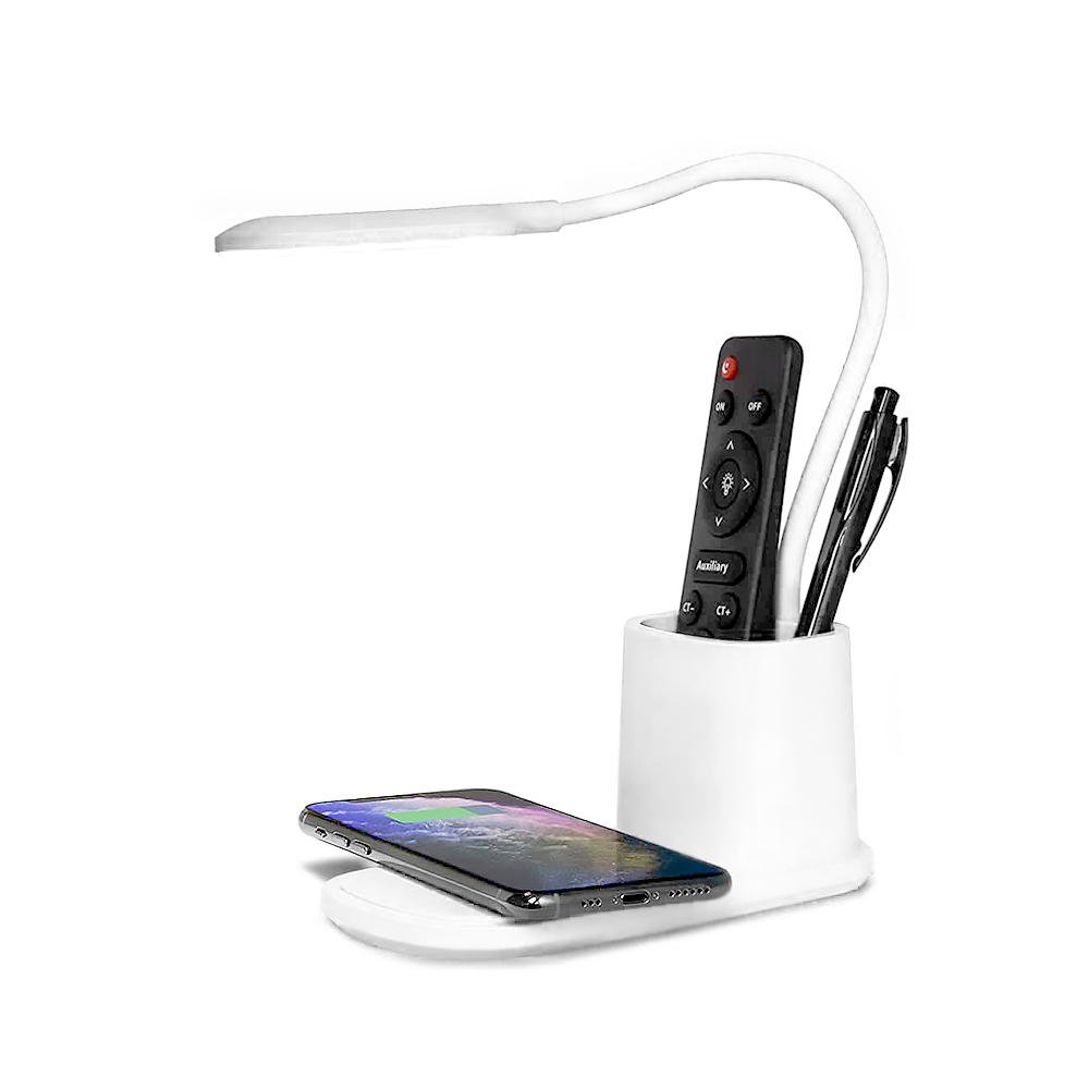 Практичная настольная лампа Tenza для использования в офисе и доме. Стильный лаконичный дизайн и гибкое поворотное регулирование лампы удобно в использовании как на офисном столе, так и прикроватной тумбе. Возможность выбирать степень яркости света несомненный плюс. Держатель для ручек дополняет функциональность. И безусловный лидер популярности – это функция беспроводной зарядки Qi. Тип лампы LED (0.5 x 20 световых диодов. Цветовая температура 3000-6000К). Беспроводная зарядка 10W. Питание: 5V/2A / 100~240V/50-60Hz. В комплекте кабель USB и инструкция. Размер в упаковке: 8,3*11*20,5 см