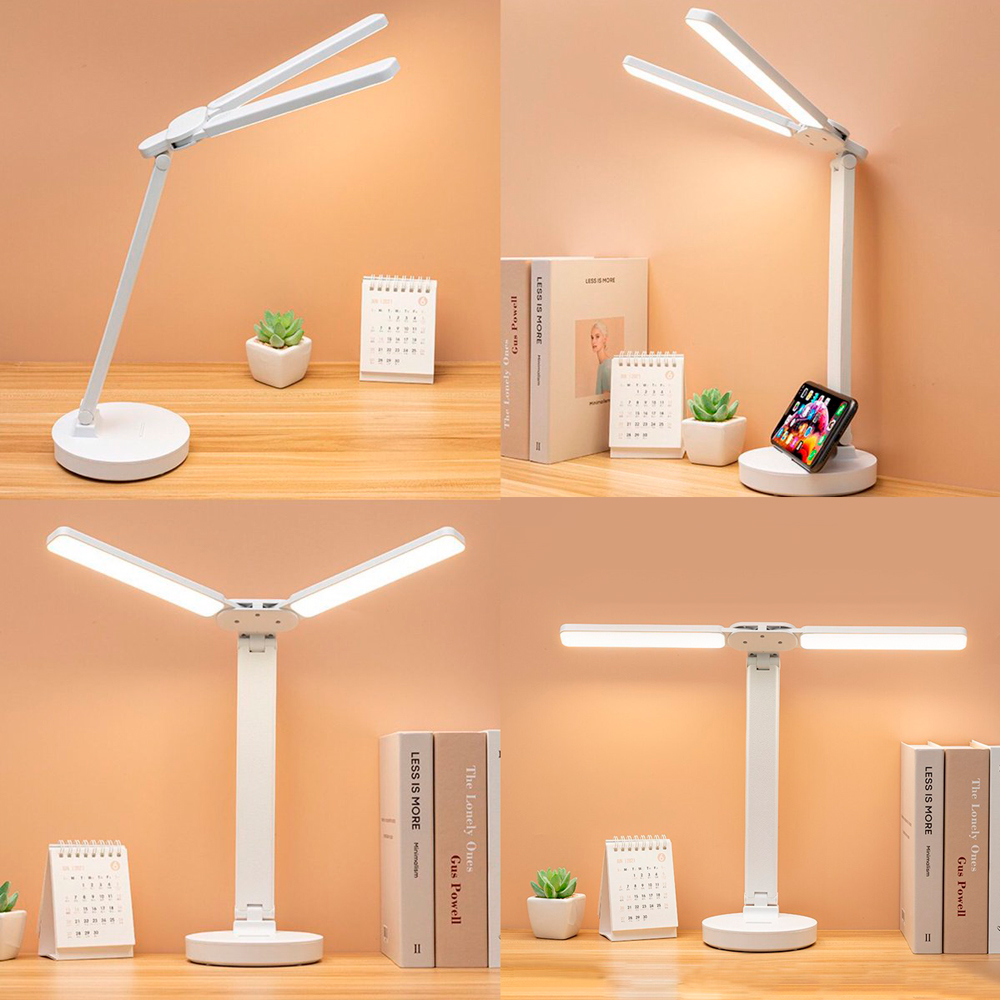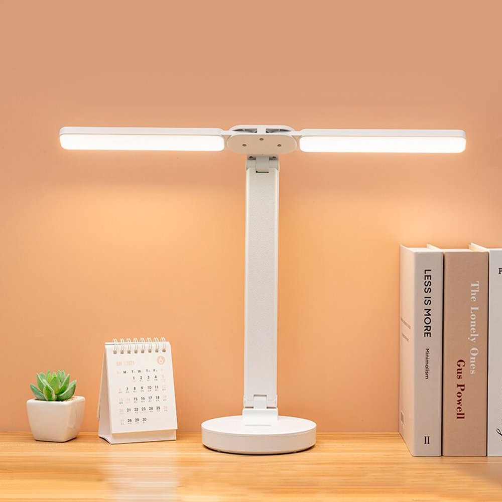 Настольная лампа Double современная настольная лампа, которая позаботится о ваших глазах (три цветовых температуры 3000K-4000K-6400K). Свобода от проводов обеспечена встроенным аккумулятор (емкость батареи 1200 mAh). Просто зарядите её и используйте там, где она нужена. Вход: 5V-2A / 3.7V (потребляемая мощность 5W). Световой поток ≈ 250 lm. Индексом цветопередачи >80 CRA. В комплекте кабель USB и инструкция.