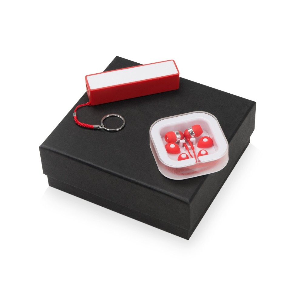 Подарочный набор Non-stop music с наушниками и зарядным устройством, красный