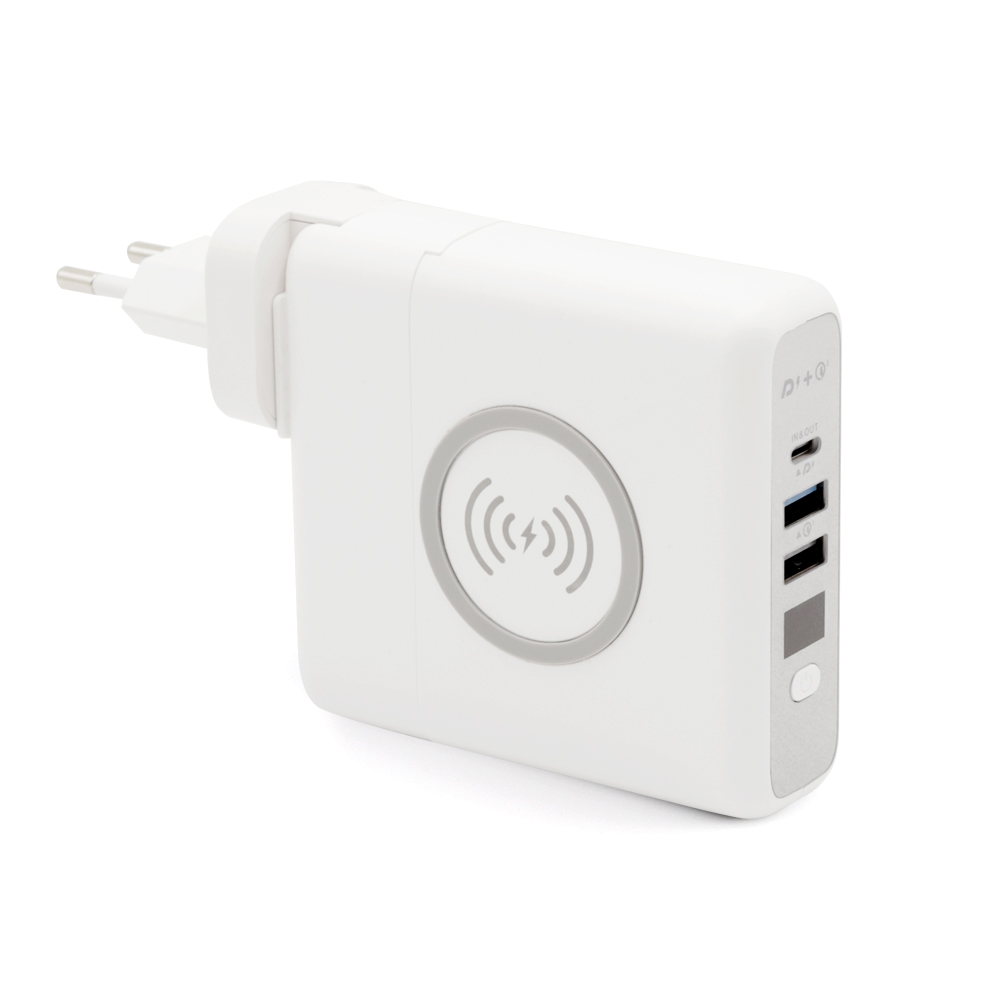 Внешний аккумулятор Gemini с беспроводной зарядкой и сетевым адаптером, 10000 mAh, белый