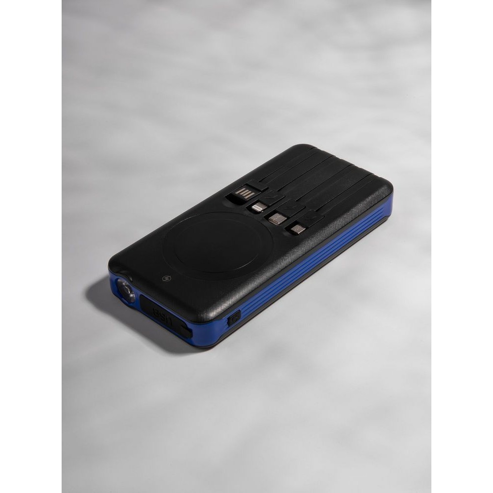 Holiday Maker Wireless — outdoor-аккумулятор с ударопрочным корпусом и защитой от пыли и брызг, который не страшно взять с собой в поход. С ним удобно заряжать разные типы устройств благодаря области для беспроводной зарядки, а также 3 встроенным кабелям с разъемами micro USB, Type-C и Lightning. Со встроенной солнечной батареей получится не остаться совсем без связи. Яркий фонарик осветит путь или послужит сигнальным маячком.