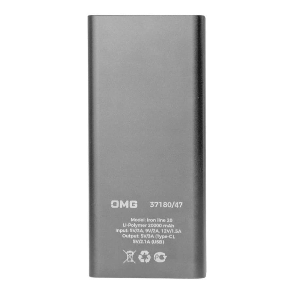 Универсальный аккумулятор Iron line 20 (20000 мАч), металл, серебристый, 14,7х6.6х2,7 см