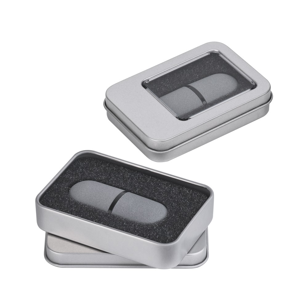 • Флеш-карта "Камень" с покрытием soft grip в футляре, объем памяти 16GB, серый