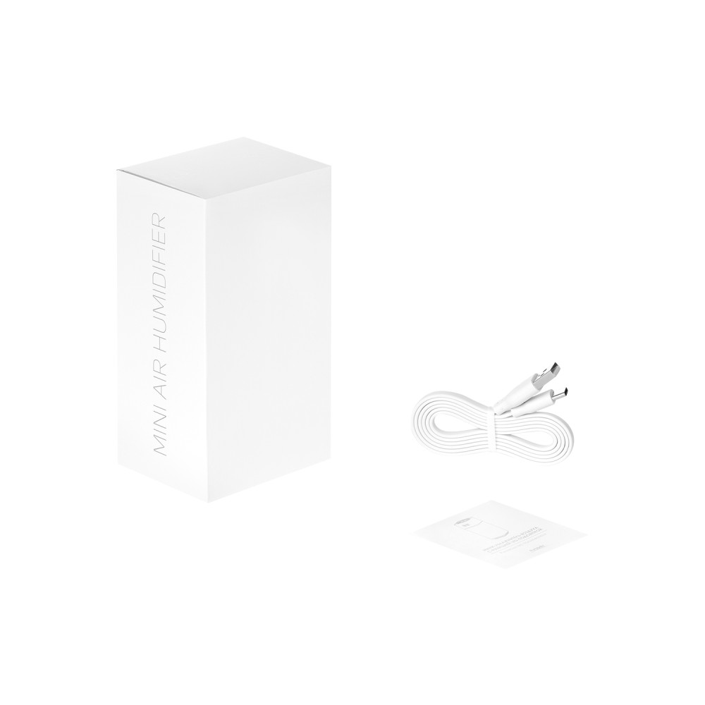Мини-увлажнитель воздуха с функцией радужной LED-подсветки. Технология нано-распыления эффективно снижает сухость воздуха и электронное излучение, что устраняет статическое электричество. Специальное покрытие корпуса OIL PAINT обеспечивает лучшие визуальные и тактильные характеристики пластика, а раздвижной корпус с подсветкой подчеркивает стильный дизайн. Увлажнитель имеет USB-выход -и может служить переходником для зарядки от сети других устройств. Подходит для использования в автомобиле. Объем резервуара воды – 200 мл.
