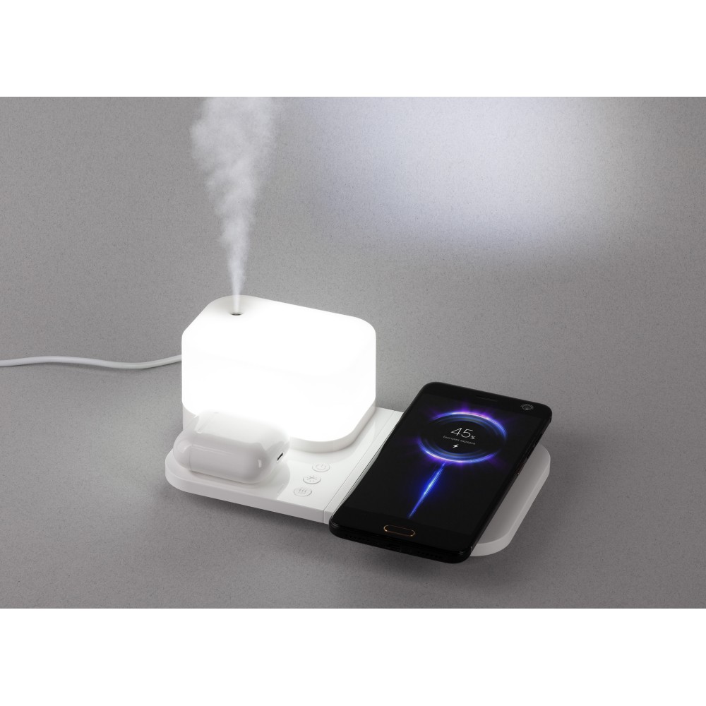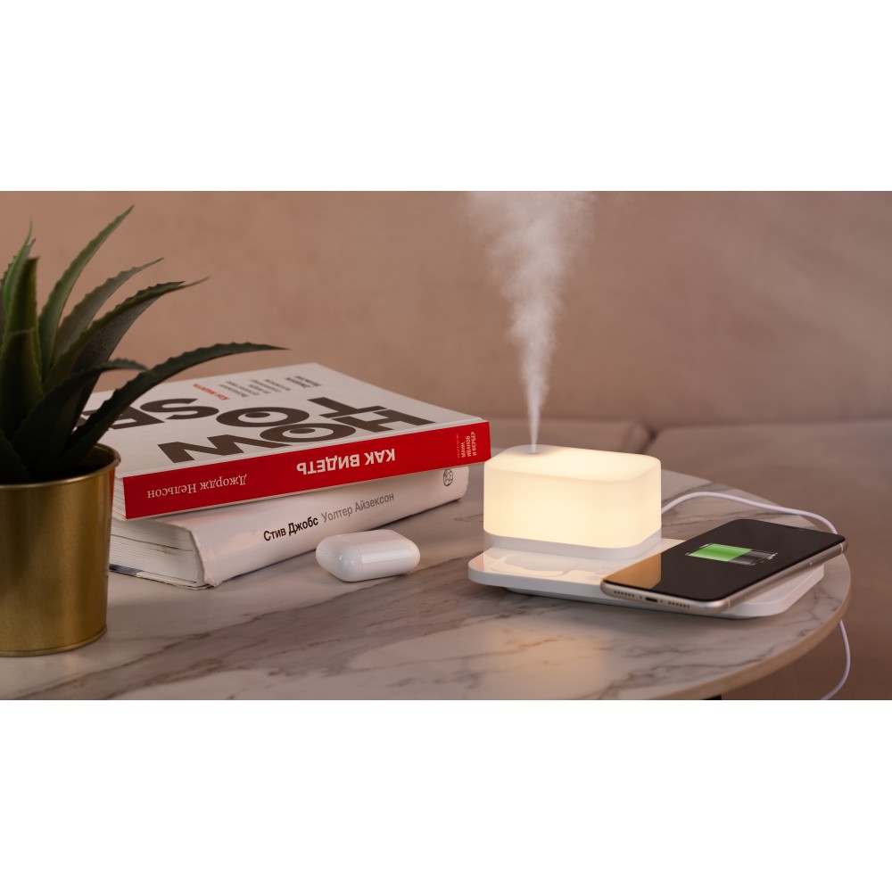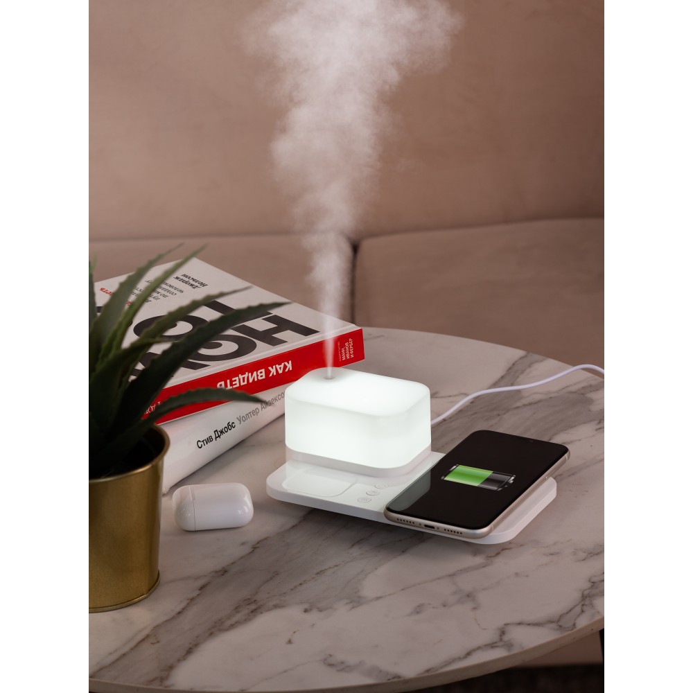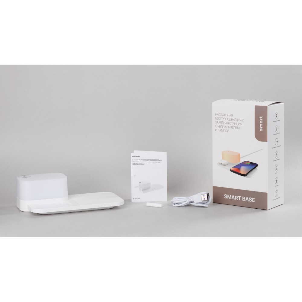 Настольная беспроводная (15W) зарядная станция "Smart Base" с увлажнителем и лампой, белый