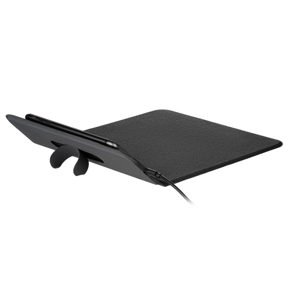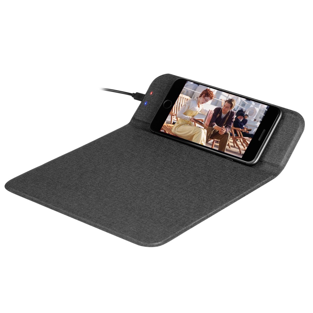 Коврик для мыши с беспроводным зарядным устройством – это функциональный аксессуар, который позволяет экономить место на рабочем столе и работать сразу с несколькими устройствами. Спокойный цвет и минималистичный дизайн делают аксессуар универсальным. Коврик легко превращается в подставку для телефона, для зарядки и удобного просмотра фильмов.