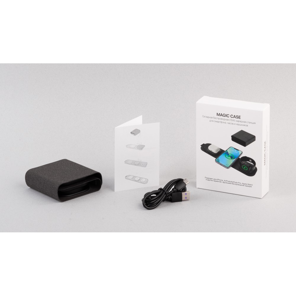 Складная беспроводная (15W) зарядная станция "Magic Case" с MagSafe для смартфона, часов и наушников, черный