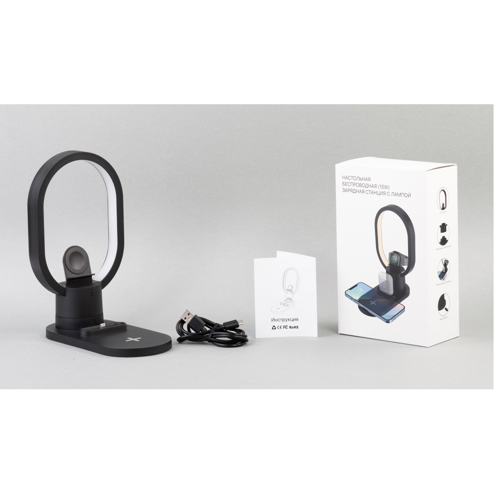 Настольная беспроводная (15W) зарядная станция "Starship" с лампой, черный