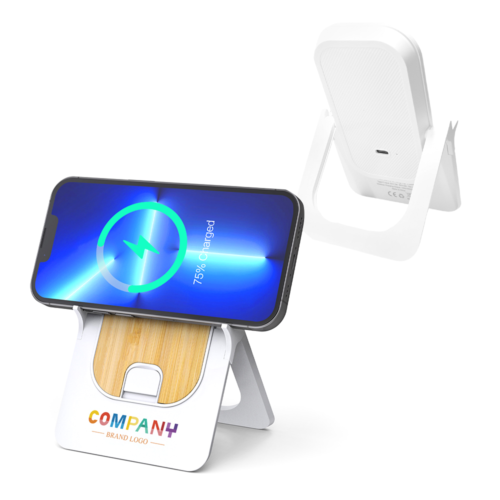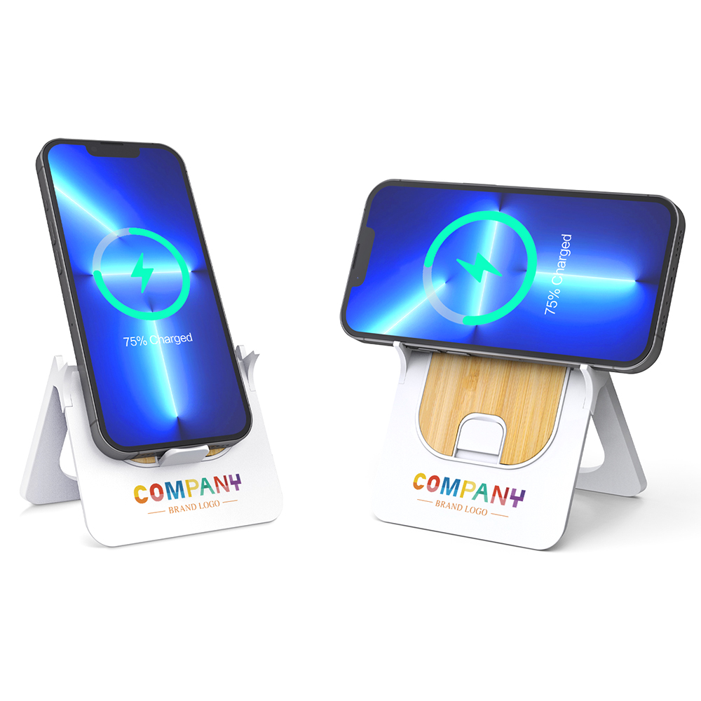 Беспроводное зарядное устройство Bambooco 15W, белый с бамбуковым