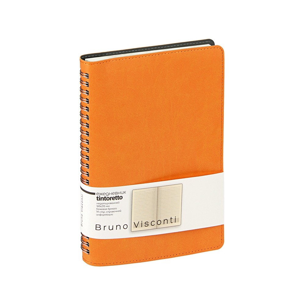 Недатированный ежедневник формата А5 Tintoretto ТМ Bruno Visconti - практичное решение для тех, кто любит ежедневники на пружине. Полускрытый гребень позволяет держать ежедневник открытым на столе и комфортно вести записи. 272 страницы блока произведены из превосходной бежевой бумаги плотностью 70 г/кв.м, а неброская линовка каждой страницы позволяет не отвлекаться на лишние детали. Гибкую обложку из искусственной кожи украшает отстрочка декоративной нитью по краю.
