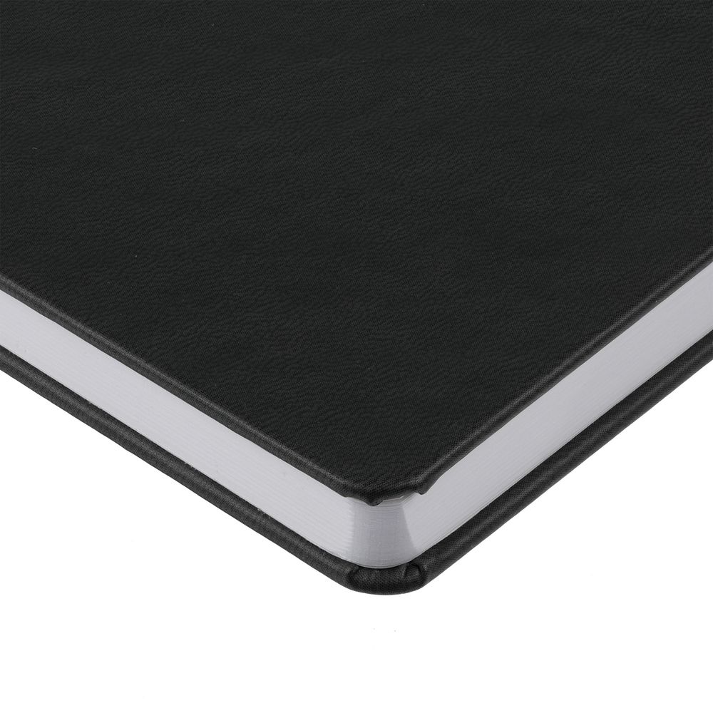 Ежедневник с твердой обложкой, выполнен из материала Latte, черный АА, дополнен ляссе в цвет обложки.