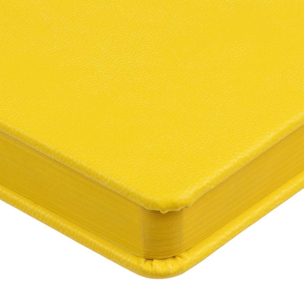 Ежедневник с твердой обложкой и тонированным обрезом. Выполнен из материала Latte, желтый, дополнен ляссе в цвет обложки.