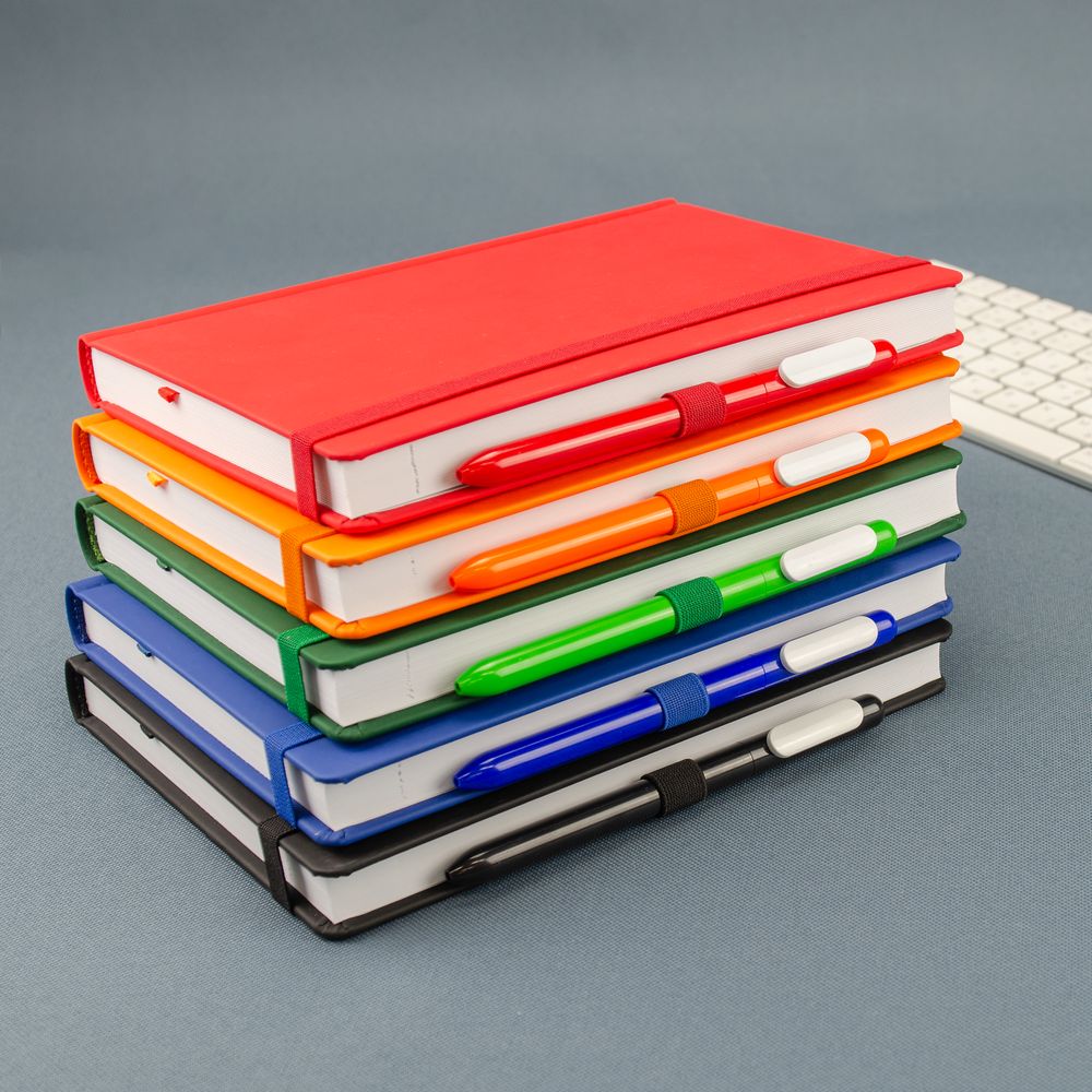 Ежедневник с твердой обложкой без поролона, выполнен из материала Soft Touch, оранжевый ОО, дополнен резинкой шириной 1 см, петлей-резинкой для ручки, капталом и ляссе оранжевого цвета.