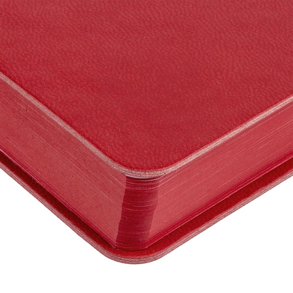 Гибкая обложка ежедневника выполнена из материала Latte, красный РР. Внутри корешка — специальное место для крепления ручки размером до 15х0,9 см.