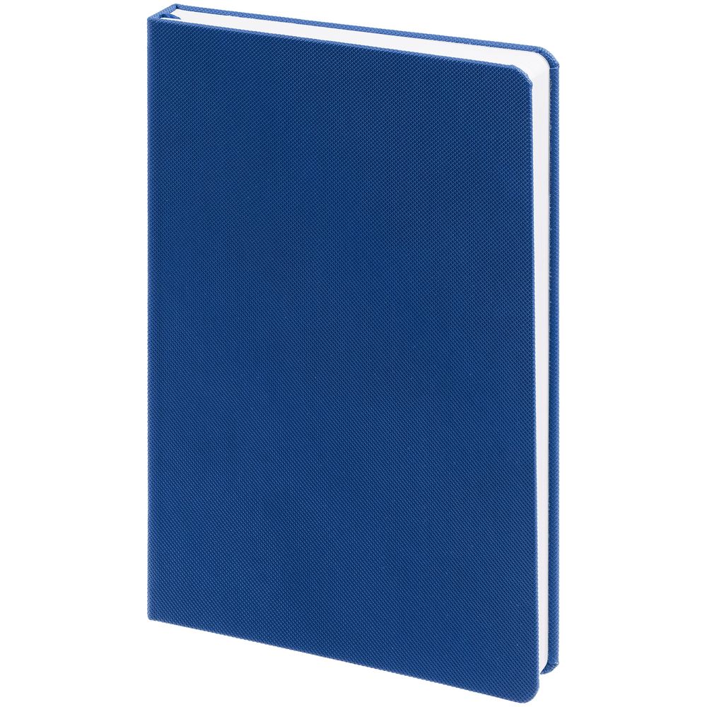 Ежедневник с твердой обложкой, выполнен из материала Canyon, синий НН, дополнен ляссе в цвет обложки.