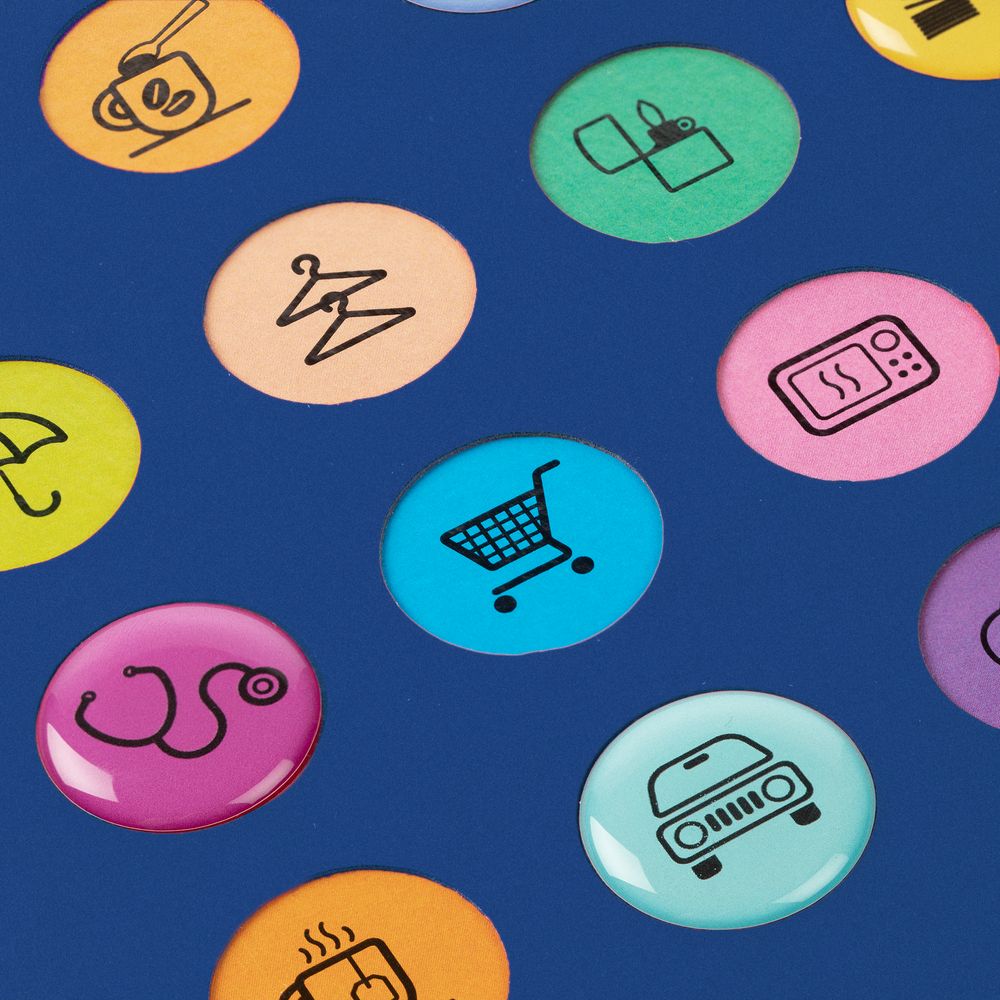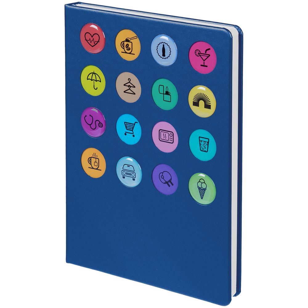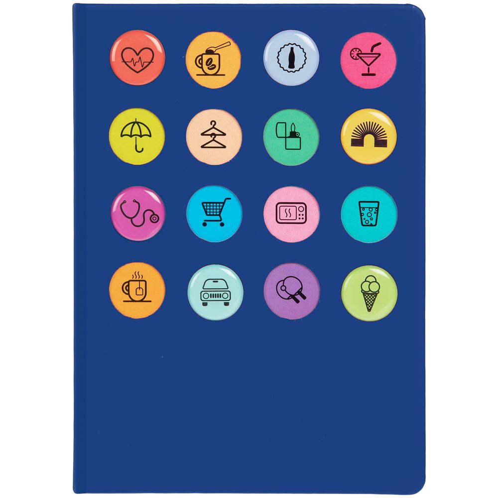Обложка ежедневника из материала Soft Touch. На корешке обложки выполнено блинтовое тиснение, обложка дополнена вырубкой с печатью на бумаге и полимерными наклейками под смолой.