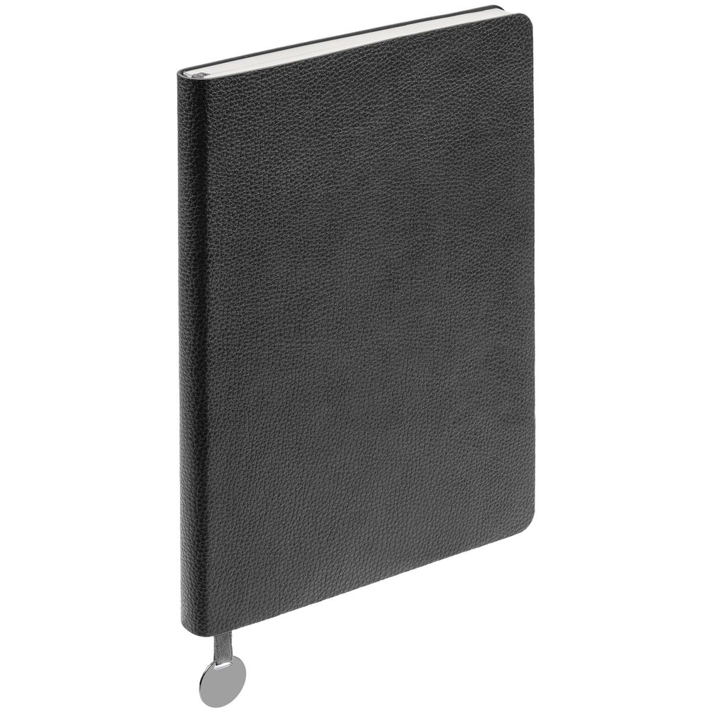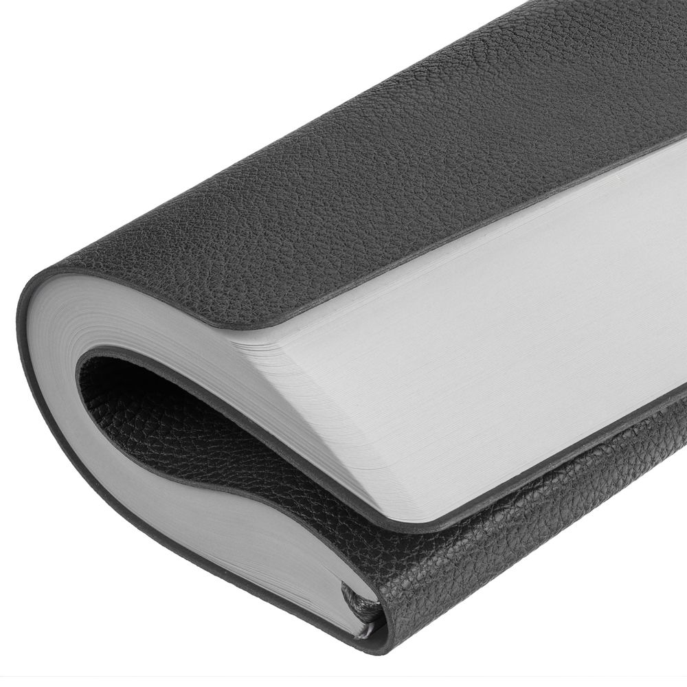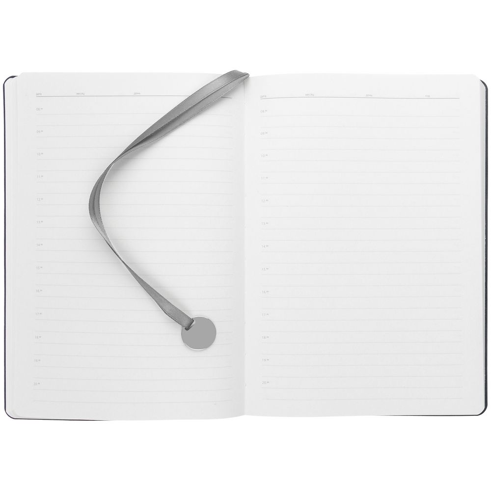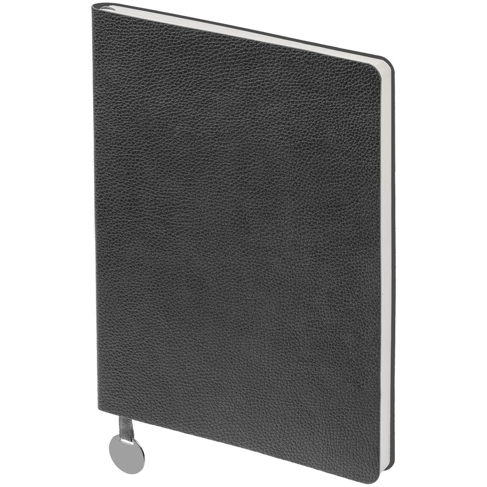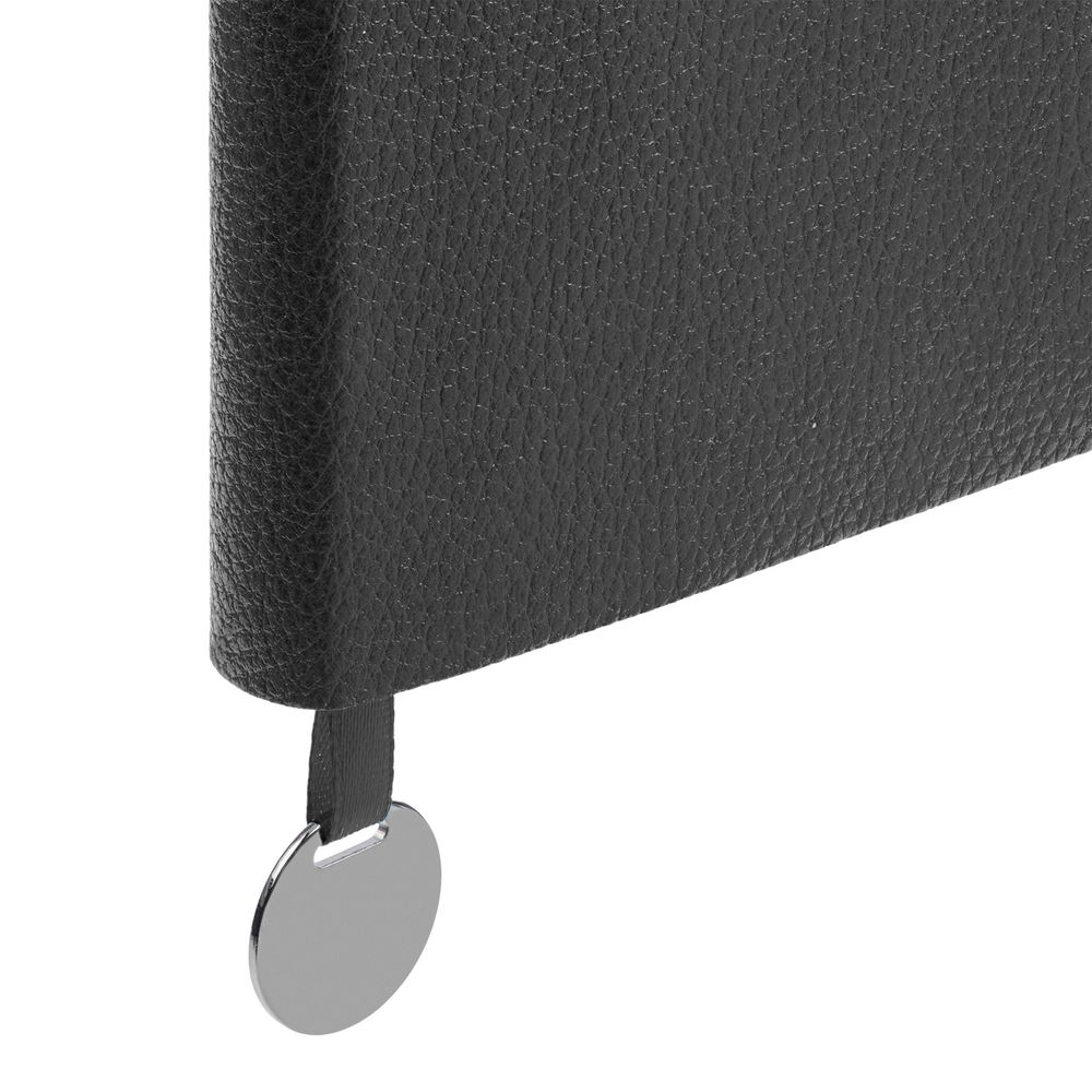 Ежедневник с гибкой обложкой, выполнен из материала La Fite, темно-серый ЕЕ, дополнен ляссе в цвет обложки с металлическим шильдом.