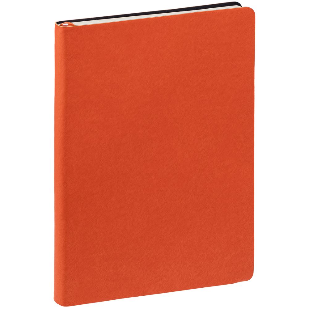 Ежедневник с гибкой обложкой, выполнен из материала Latte, оранжевый, дополнен ляссе в цвет обложки.