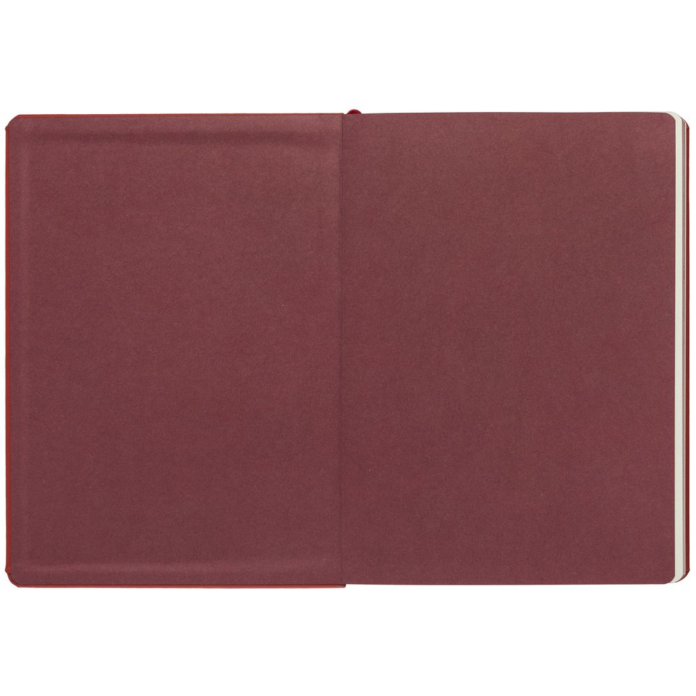 Ежедневник с твердой обложкой и тонированным обрезом, выполнен из материала Soft Touch, красный РР, дополнен ляссе в цвет обложки.