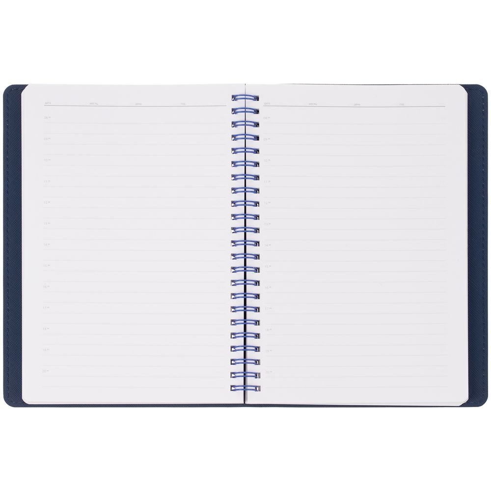 Ежедневник с гибкой обложкой, выполнен из материалов Soft Touch, желтый КК и Nice Touch, темно-синий ХХ.