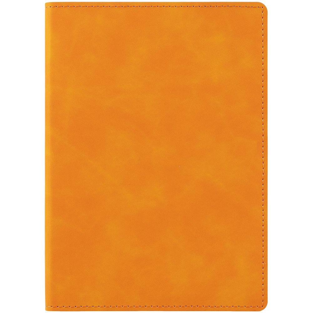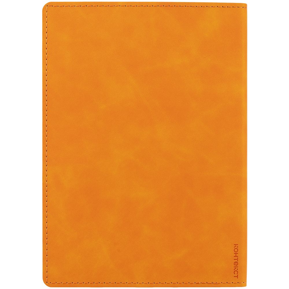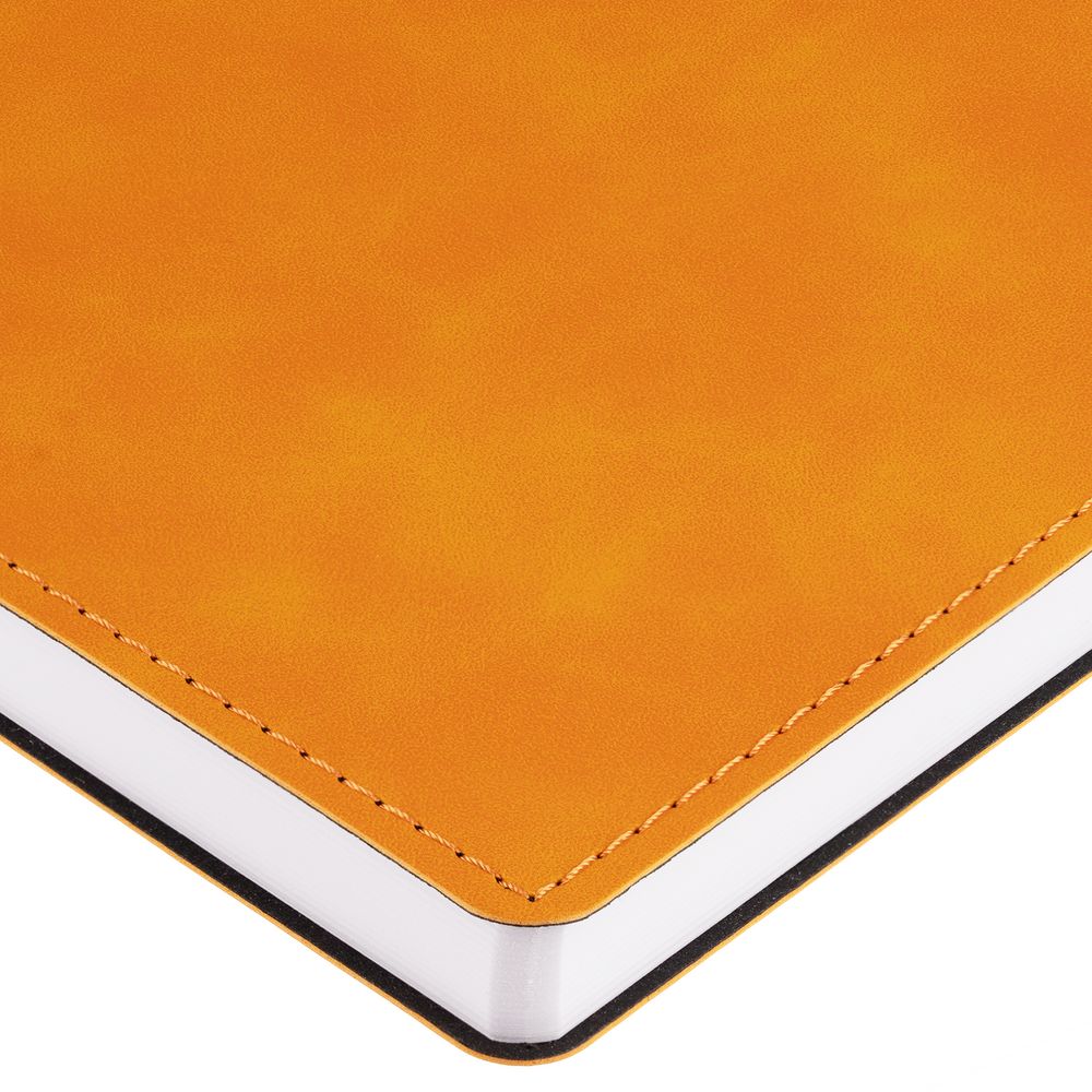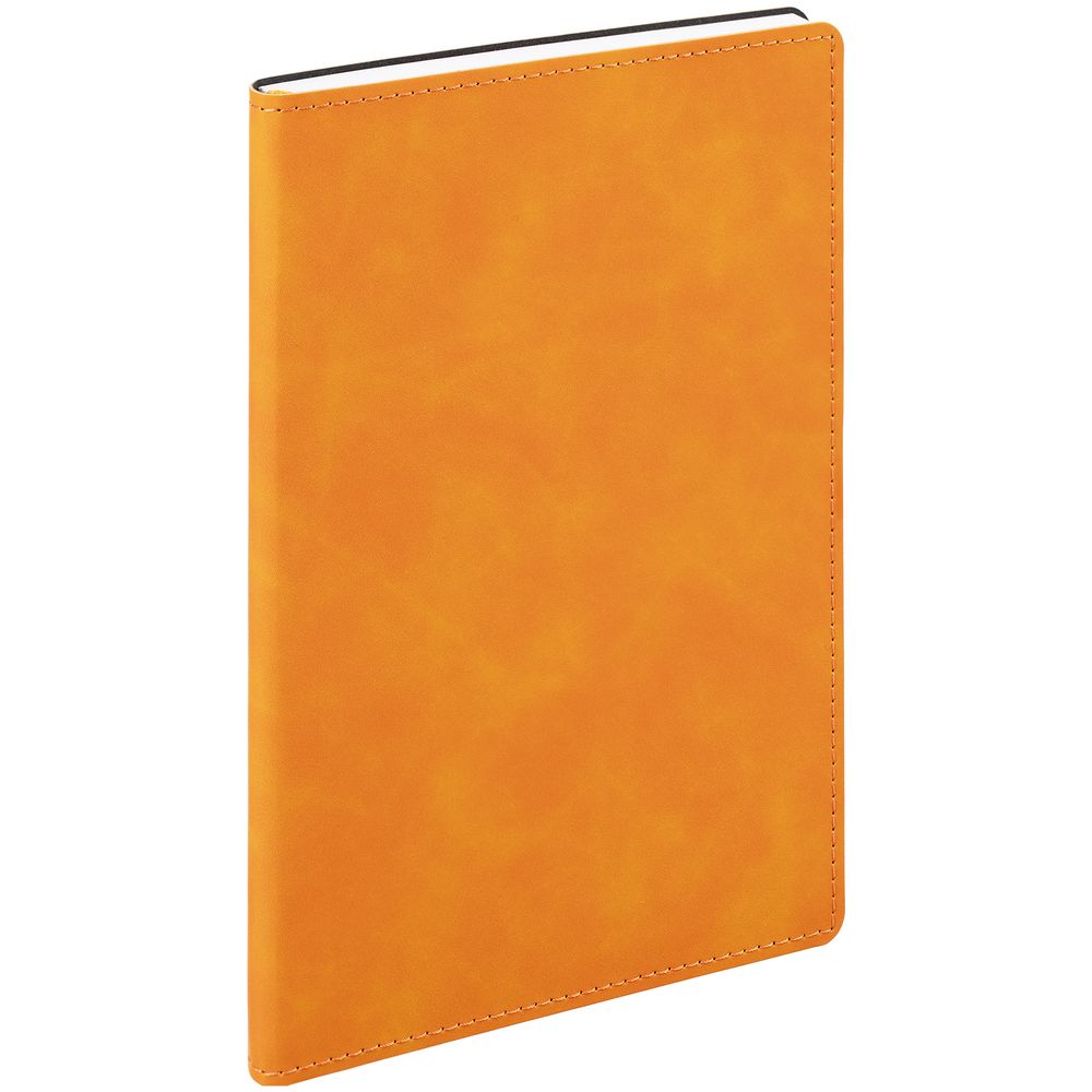 Ежедневник с гибкой обложкой, выполнен из материала Nubuck Touch, оранжевый OO, дополнен ляссе в цвет обложки.