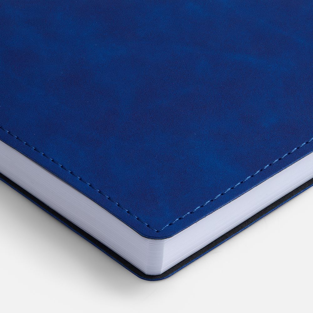 Ежедневник в клетку, с гибкой обложкой, выполнен из материала Nubuck Touch, синий НН, дополнен ляссе синего цвета.