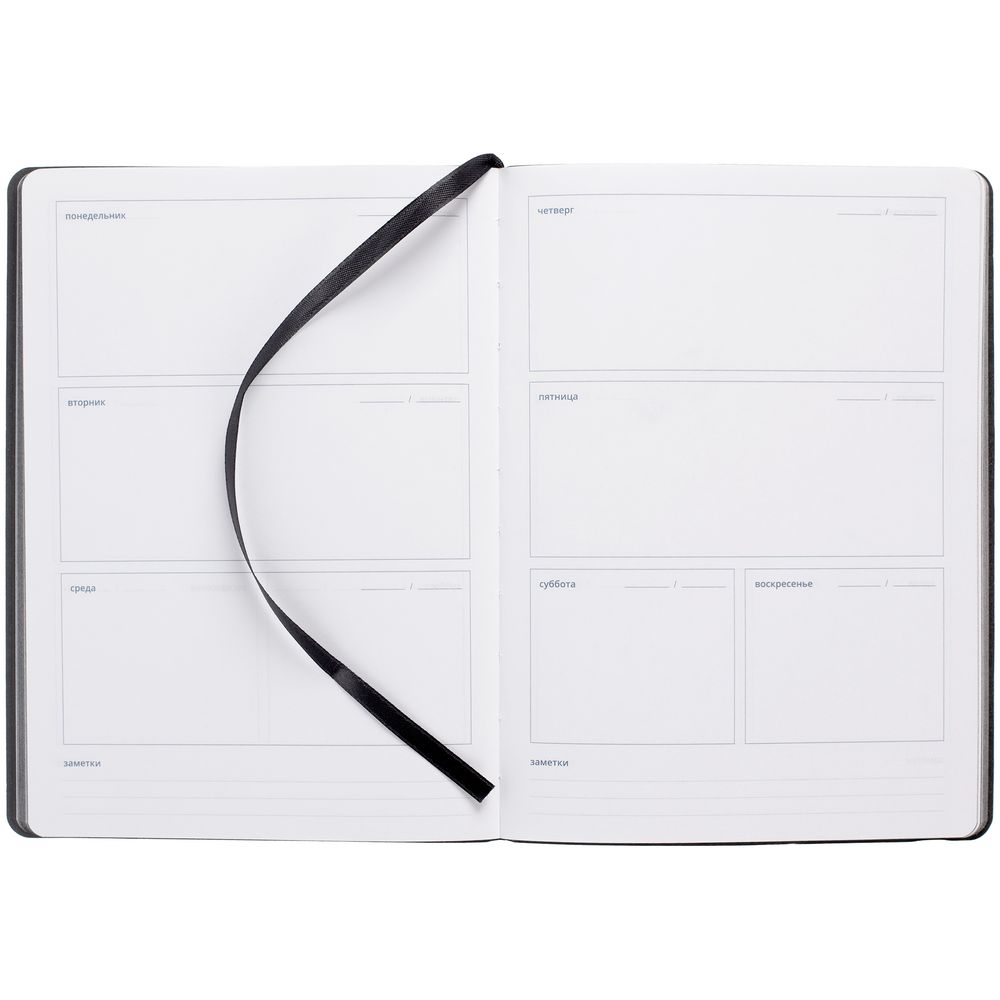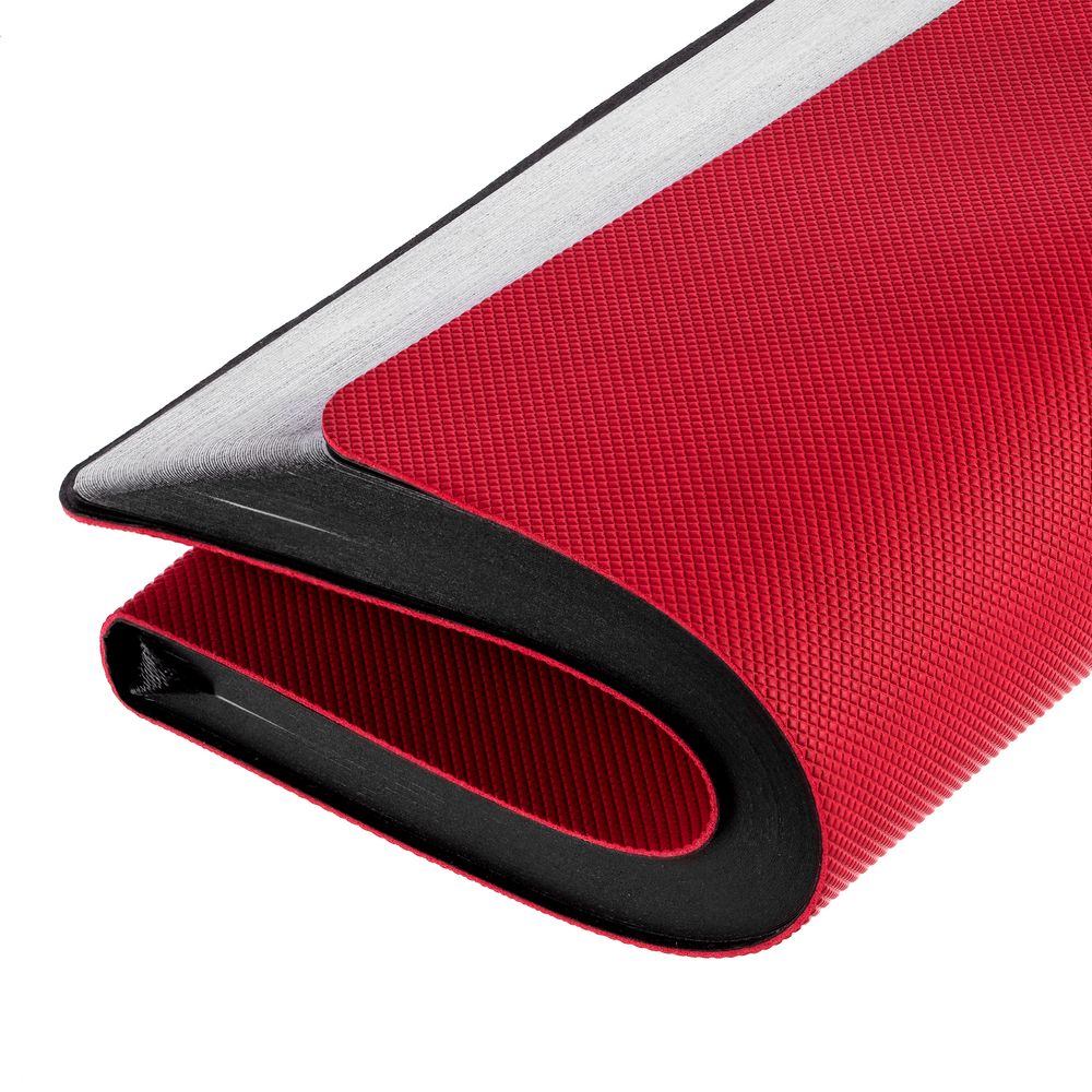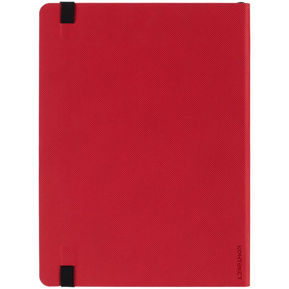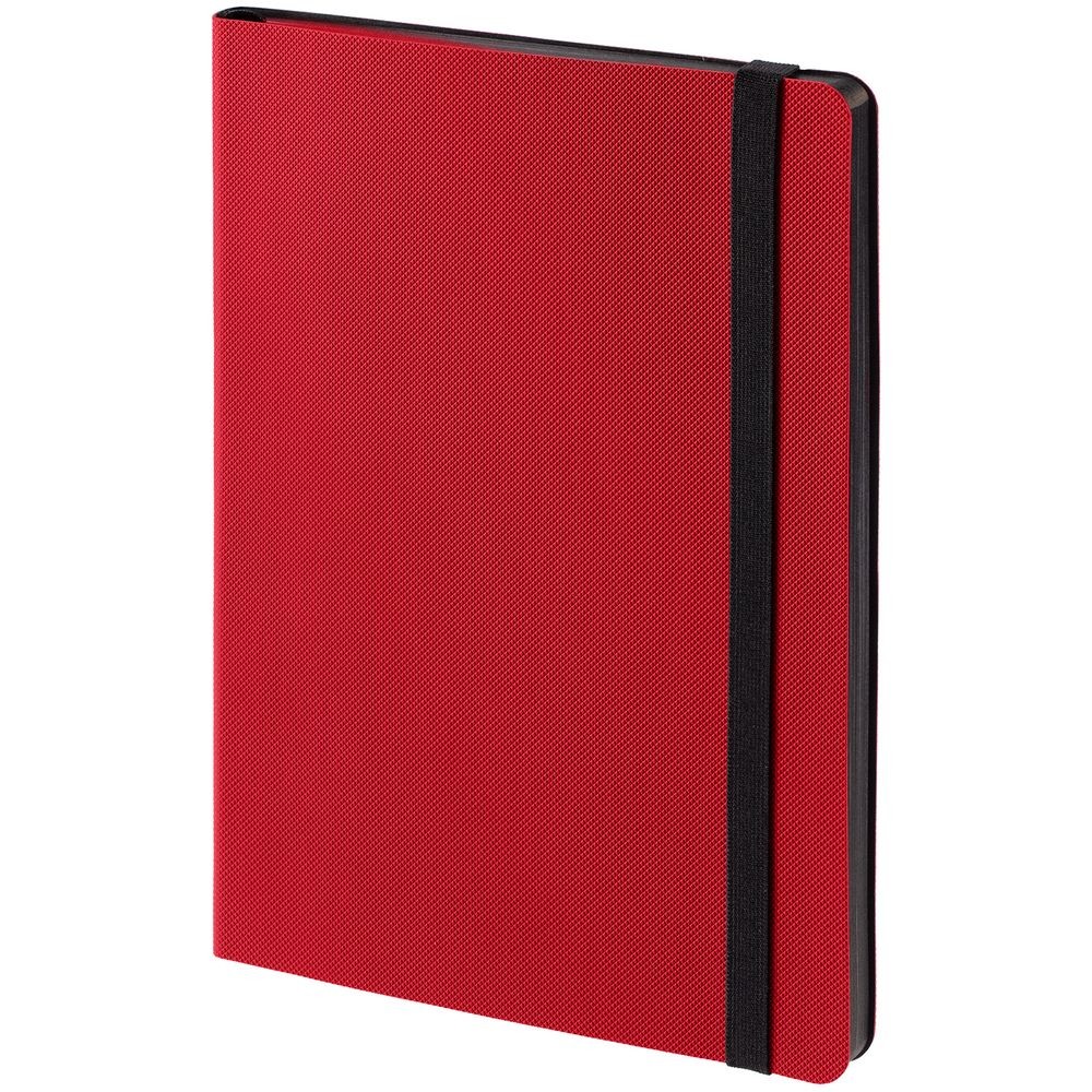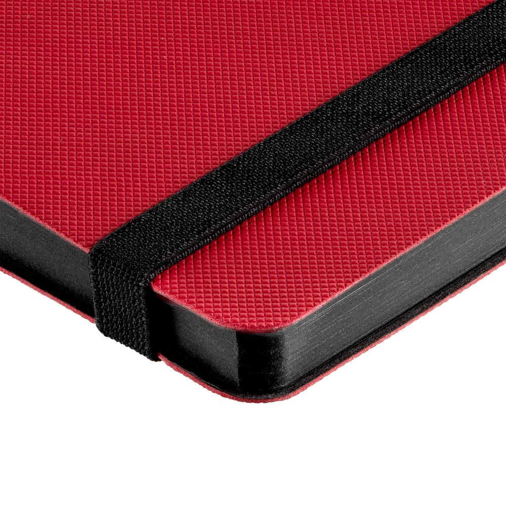 Еженедельник в гибкой обложке выполнен из материала Canyon, красный PP, дополнен резинкой и ляссе черного цвета.