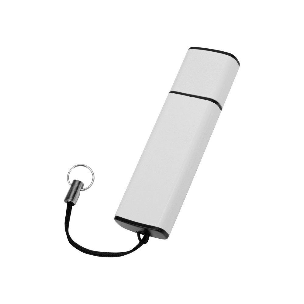 Металлическая флешка в окрашенном корпусе с колпачком. Имеет крепление для переноски.