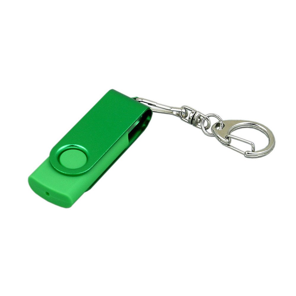 Флешка 3.0 промо поворотный механизм, с однотонным металлическим клипом,, зеленый