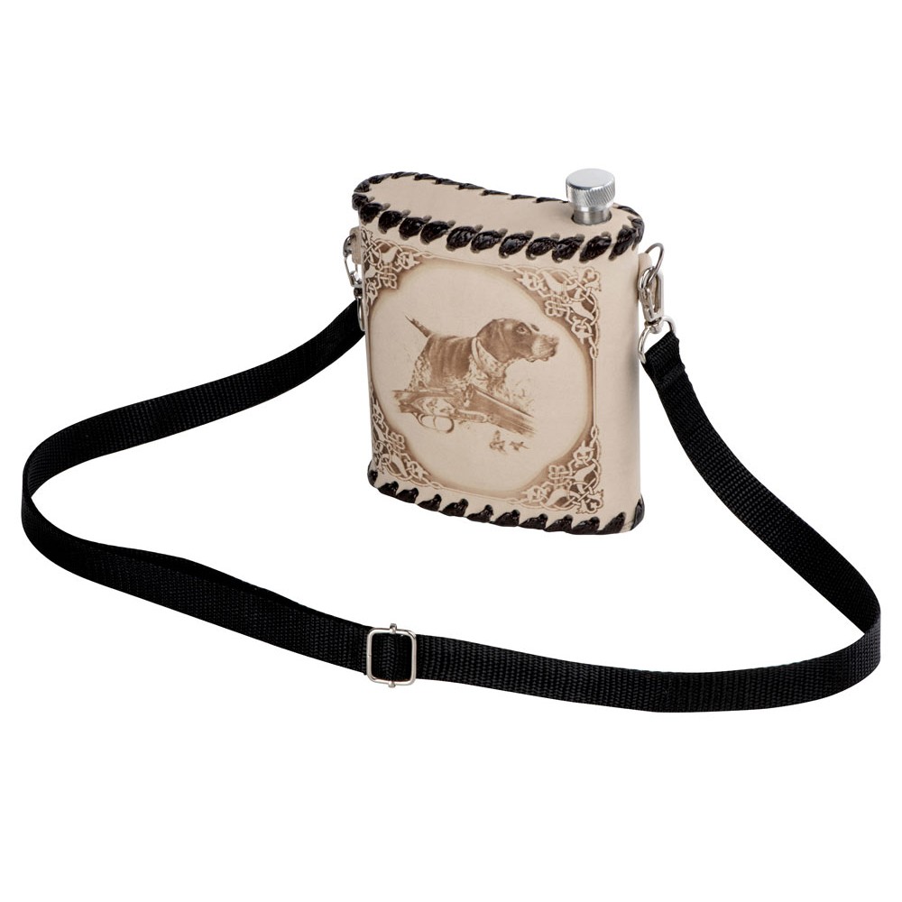Фляга 0,5л в оплетке из натуральной кожи с нанесением рисунка методом художественного выжигания.