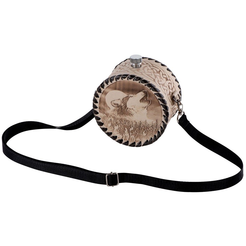Фляга 1л в оплетке из натуральной кожи с нанесением рисунка методом художественного выжигания.