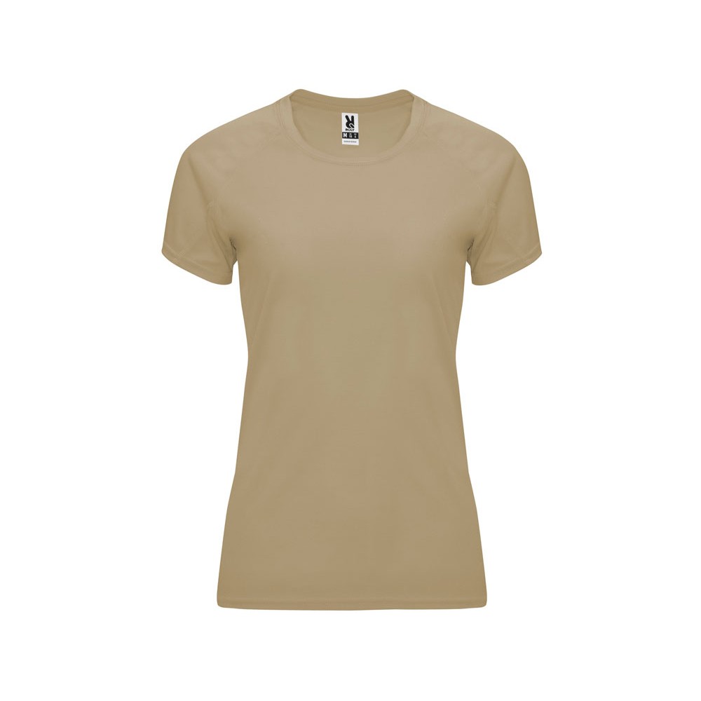 Спортивная футболка с коротким рукавом реглан для женщин. Круглый вырез горловины с отделкой плоским швом. Рукав сложного кроя для обеспечения дополнительного удобства при занятиях спортом. Отделка плоским швом с застилом по пройме и рукавам.