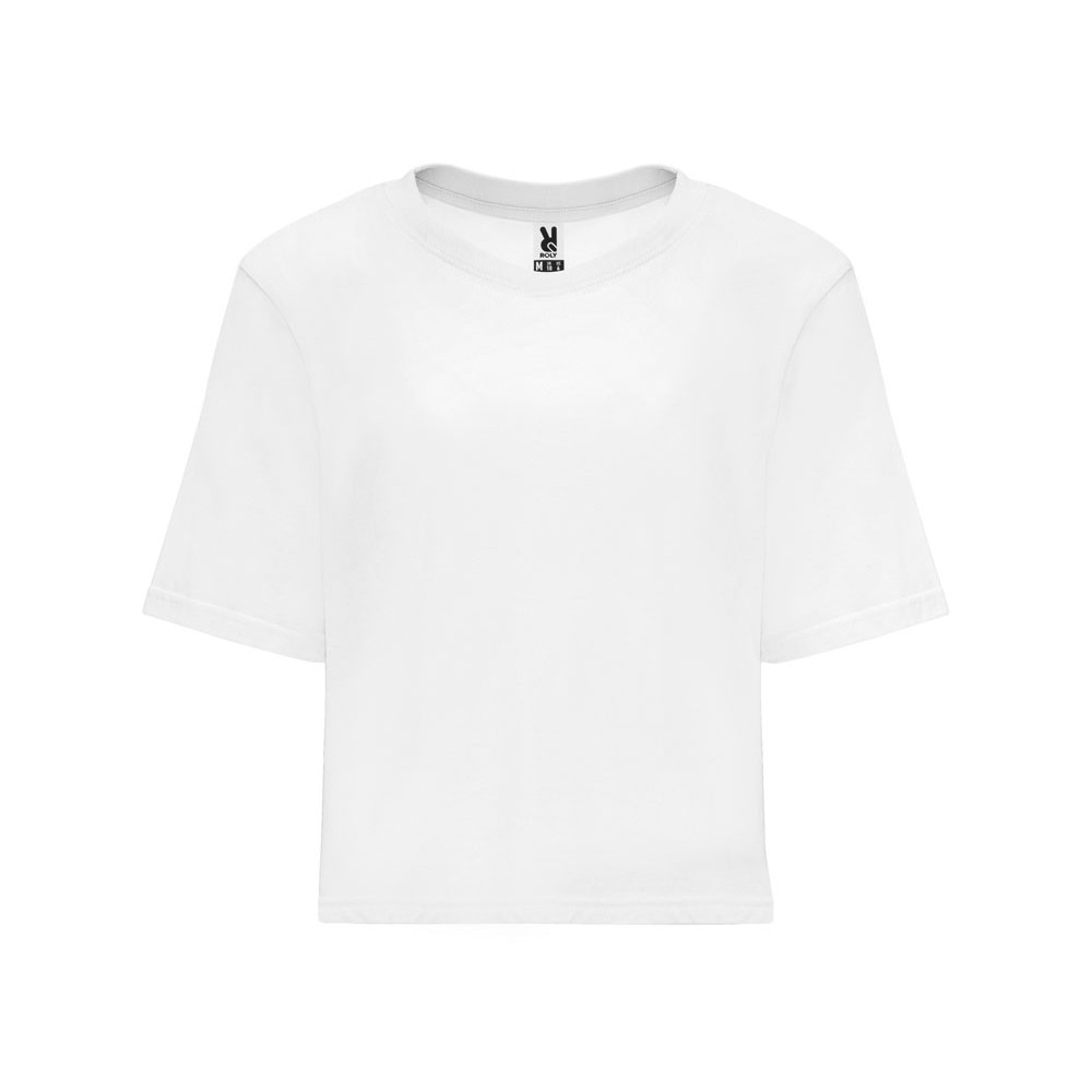 Укороченная женская футболка расслабленного силуэта. Риб 1х1 по горловине