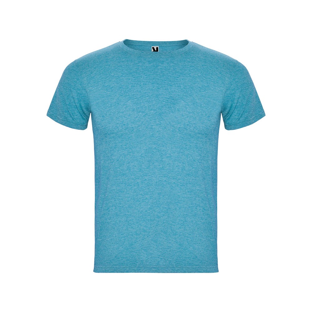 Футболка без боковых швов с коротким рукавом в меланжевом эффекте. Риб горловины 1х1 дополнительно укреплен двойной строчкой.