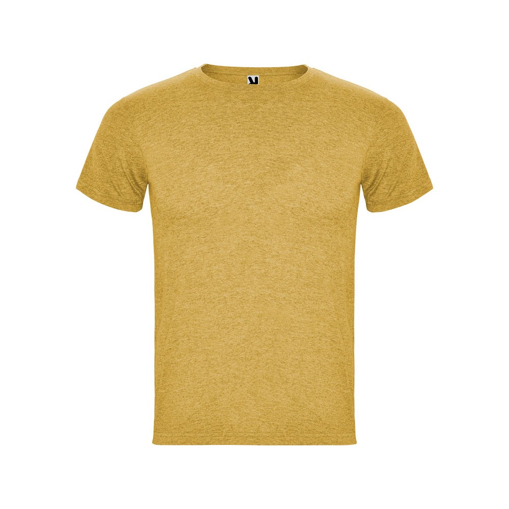 Футболка без боковых швов с коротким рукавом в меланжевом эффекте. Риб горловины 1х1 дополнительно укреплен двойной строчкой.