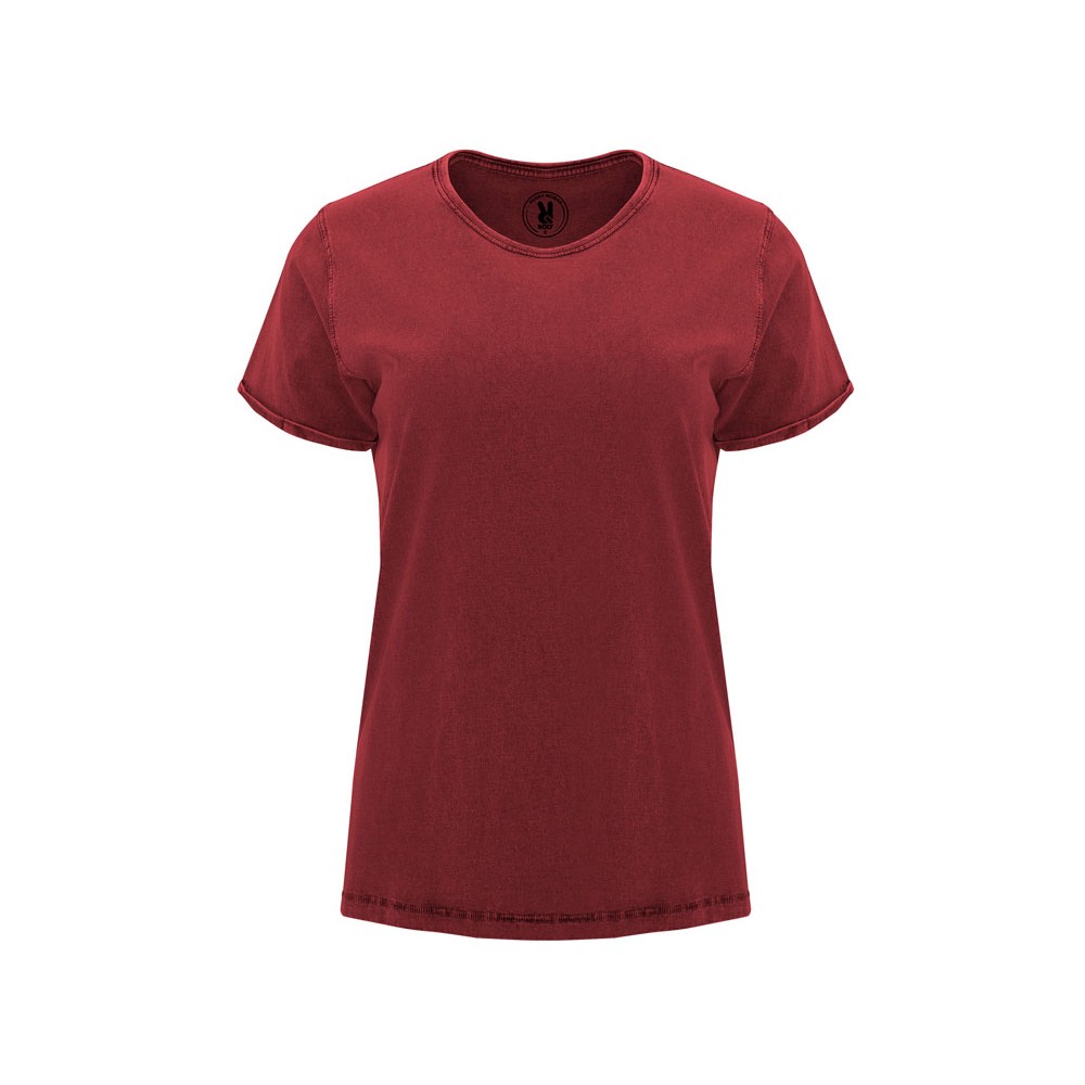 Женская футболка с джинсовым эффектом. Короткий рукав, горловина обработана рибом 1х1 и дополнительно укреплена тесьмой. Двойная отстрочка по пройме. Рукав с закручивающимся краем. В ассортименте также представлена аналогичная мужская модель Husky