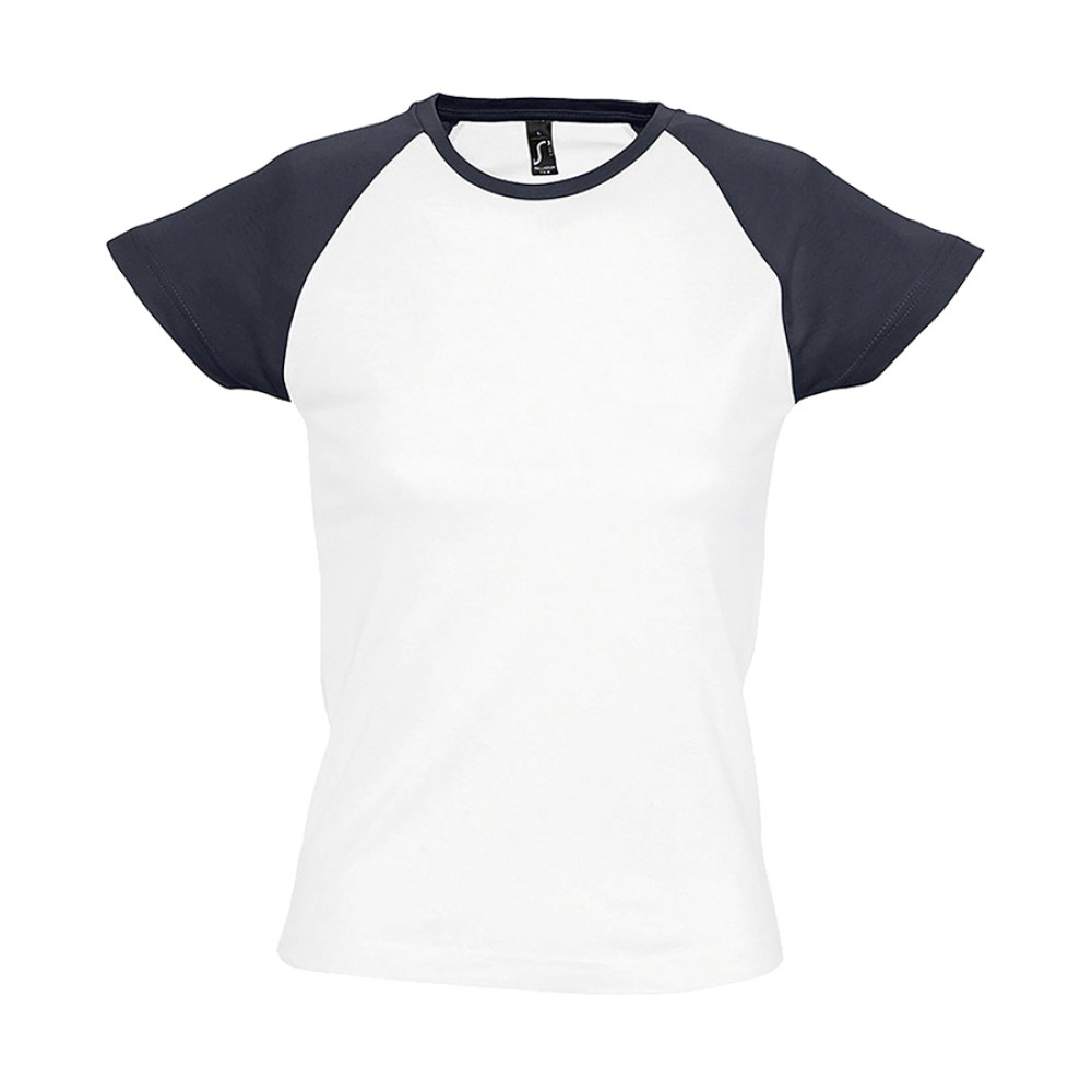 Двухцветная женская футболка MILKY является парой к мужской футболке FUNKY. Благодаря констрастирующим цветным коротким рукавам реглан она выглядит оригинально и стильно, а отсутствие боковых швов обеспечивает широкое поле для печати любого креатива.