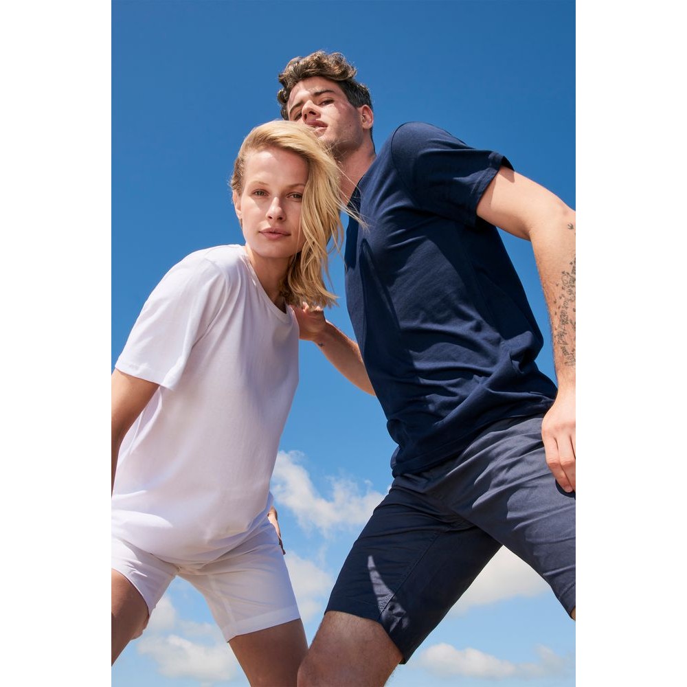 Футболка унисекс с боковыми швами из переработанных материалов. Для изготовления каждой футболки переработано 4 бутылки, из которых в последствии была сделана полиэстеровая пряжа.