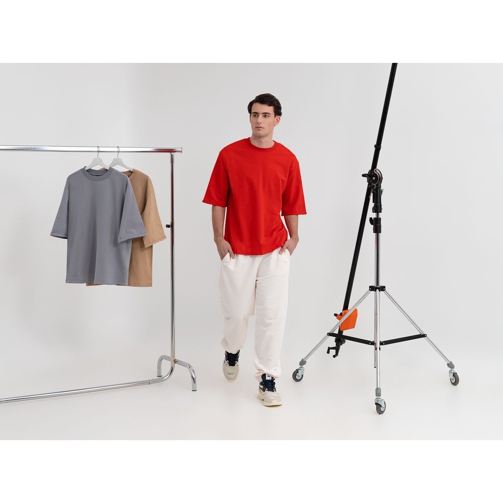 Футболка унисекс свободного кроя со спущенным плечом и смещенными плечевыми швами.