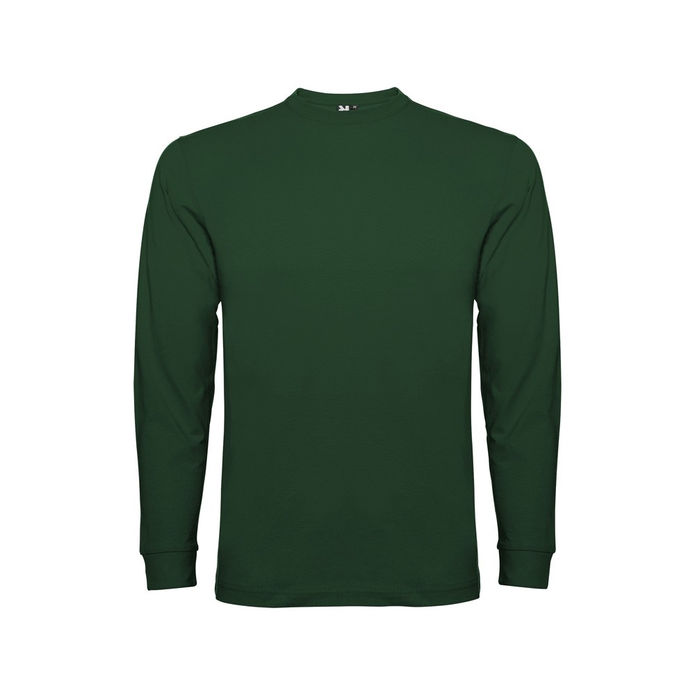 Футболка с длинным рукавом без боковых швов. Круглый вырез горловины и манжеты из риба 1х1. Укрепляющая отделочная строчка по горловине и плечам