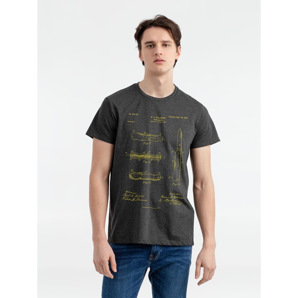 Футболка приталенная Old Patents. Knife, черный меланж