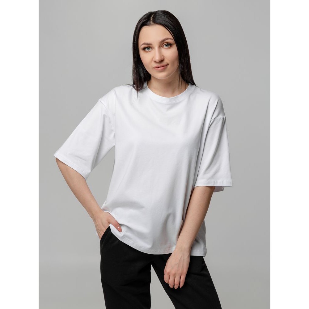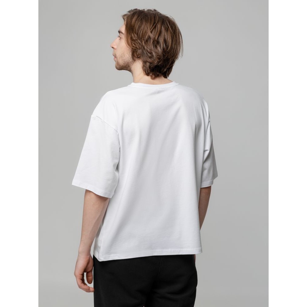 Футболка унисекс свободного кроя с боковыми швами. Благодаря тонким и длинным волокнам хлопка ткань футболки отличается гладкостью, ровностью и прочностью, отлично сохраняет форму, не деформируется и не выцветает при стирке.