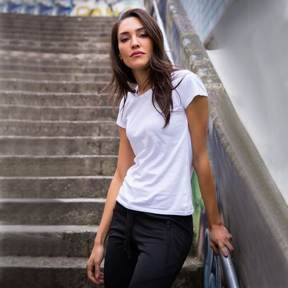 Итальянские женские футболки Сalifornia Lady бренда JRC выполнены из 100% чесаного хлопка (англ. сombed cotton) – чрезвычайно мягкого варианта хлопка, изготовленного путем специальной обработки хлопковых волокон. В процессе производства чесаного хлопка удаляются любые загрязнения, пух и самые короткие волокна, а самые здоровые, длинные и тонкие оставляются. После подобной обработки пряжа становится тоньше, ровнее и крепче, что делает футболку Сalifornia более износостойкой.
