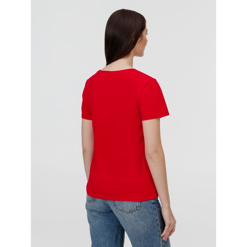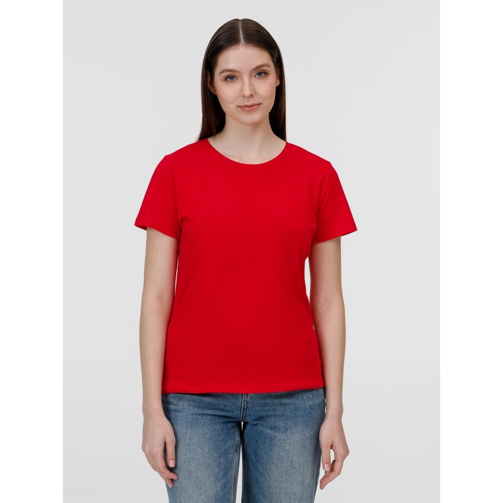 Кроеная женская футболка приталенного силуэта с круглым воротом.