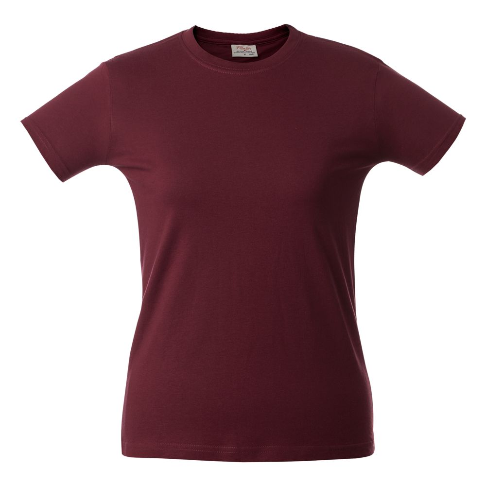 Женская футболка с уплотненными швами на плечах и двойным швом с эластаном. Четырехслойная резинка на воротнике предохраняет его от растяжения.